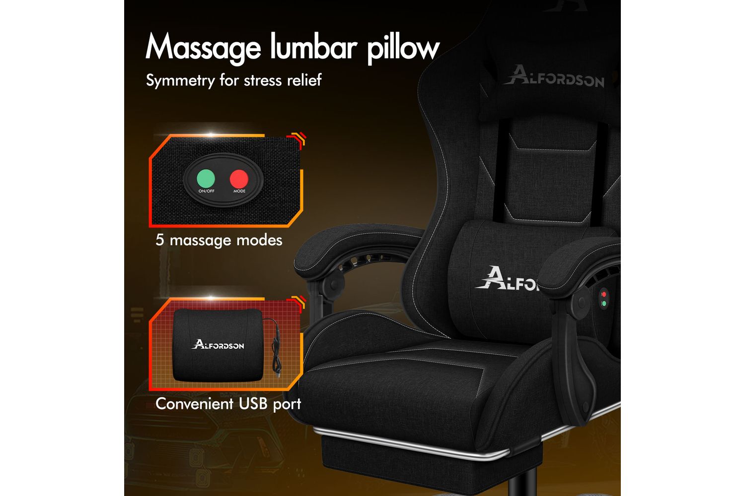 Experience Next-Level Comfort With The Alfordson Gaming Chair – Swivel Massage Armchair In Black Linen Fabric