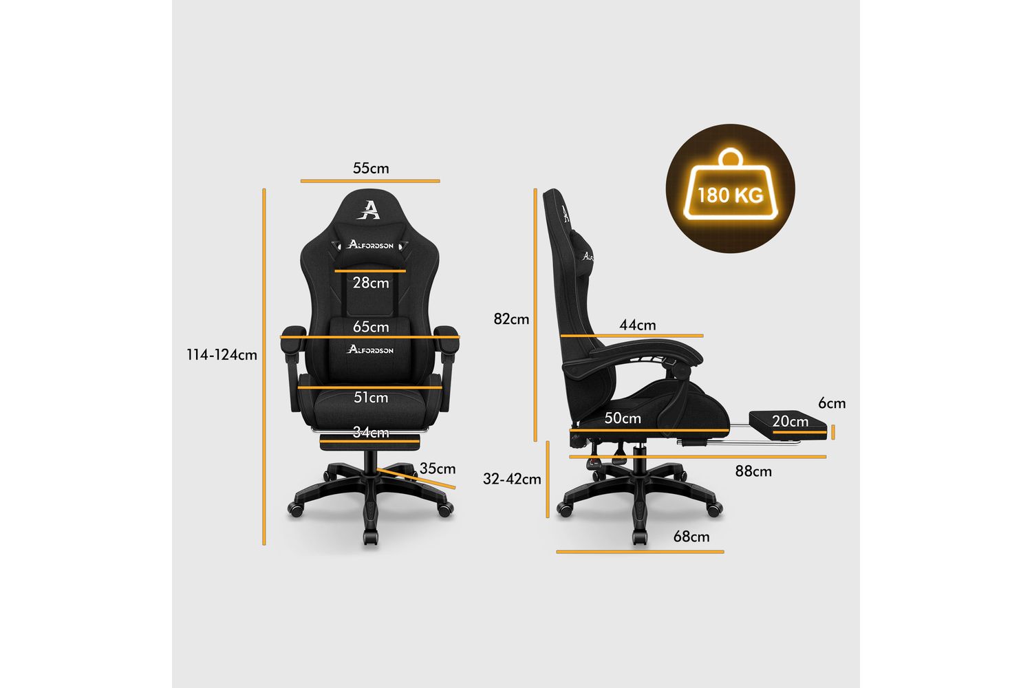Safety and reliability are at the core of the Alfordson design. The SGS-approved gas-lift system allows for smooth height adjustments, while the certified caster wheels glide effortlessly across any surface. With a high weight capacity of up to 180kg, this chair is built to accommodate a wide range of users, ensuring everyone can enjoy its premium features.