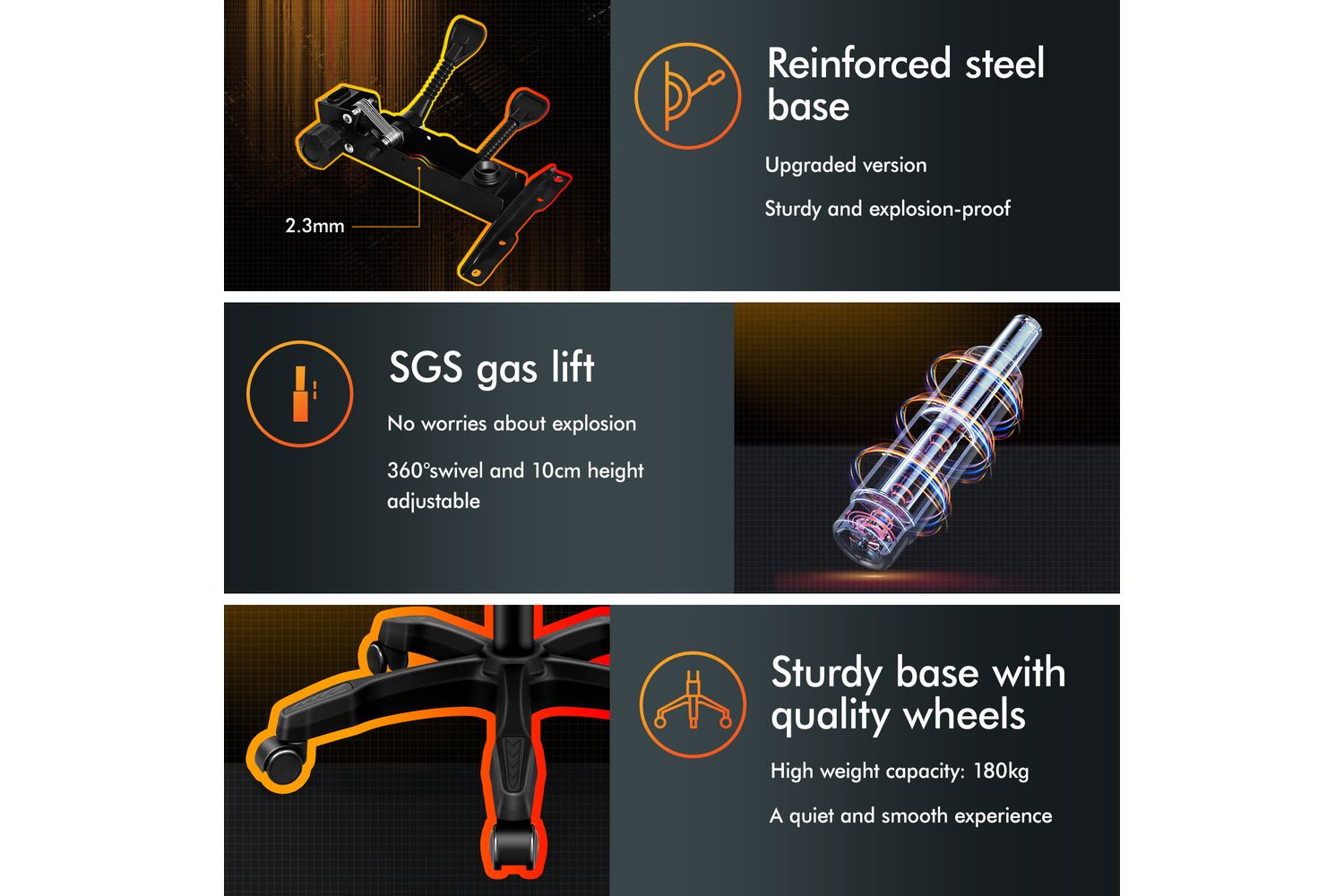 - SGS-approved gas-lift system for safe height adjustment