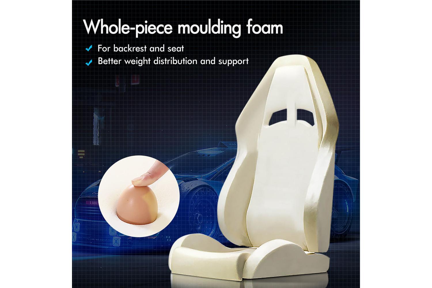 - Detachable, height-adjustable lumbar and neck cushions