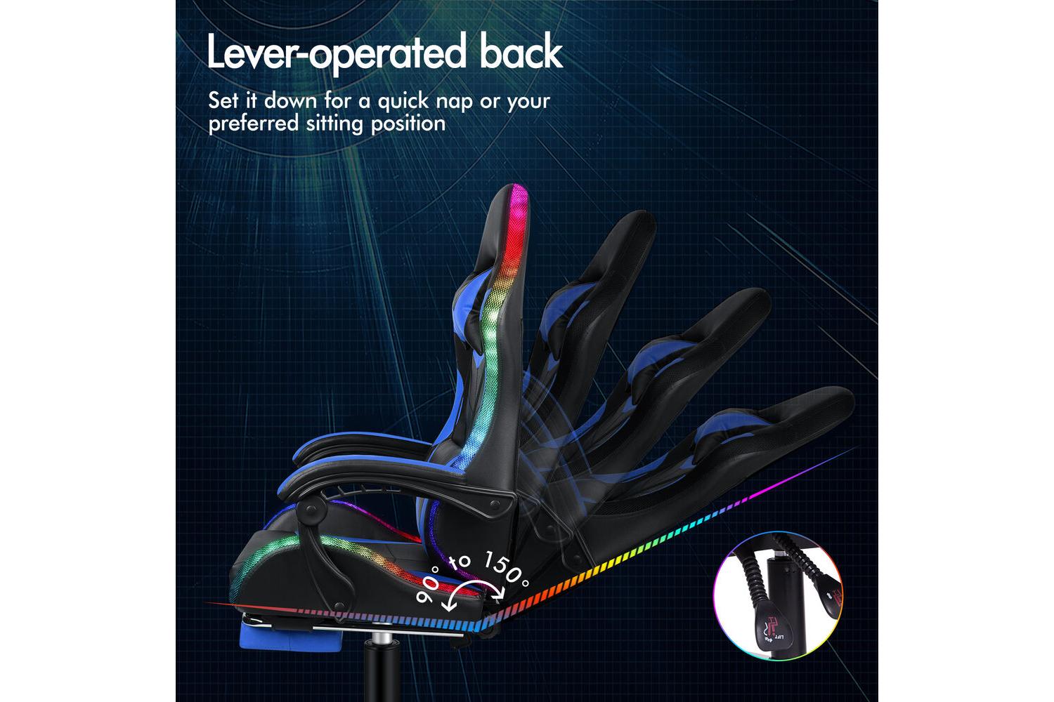 Take your gaming experience to the next level with the integrated LED lighting system. Choose from two static colour options, 10 speed settings, 366 mode switches, and 32 brightness levels to create the perfect atmosphere for your setup. The chair's high weight capacity of 180kg ensures it is suitable for a wide range of users, while the SGS-approved gas-lift system provides smooth and reliable height adjustments.