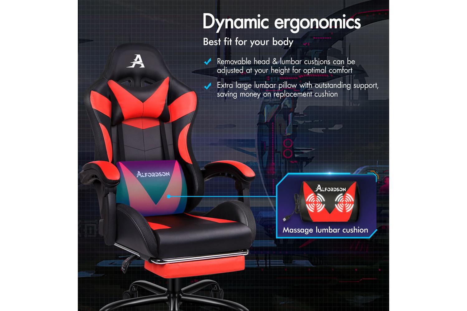 Transform your gaming and work experience with the Alfordson Gaming Massage Chair, the ultimate ergonomic desk chair designed for Irish gamers and home office professionals. Crafted for those who demand comfort, style, and performance, this massage racing chair combines cutting-edge features with a sleek, modern look in striking red PU leather. Whether you are conquering virtual worlds or powering through a busy workday, this chair delivers the support and luxury you need to stay at your best.