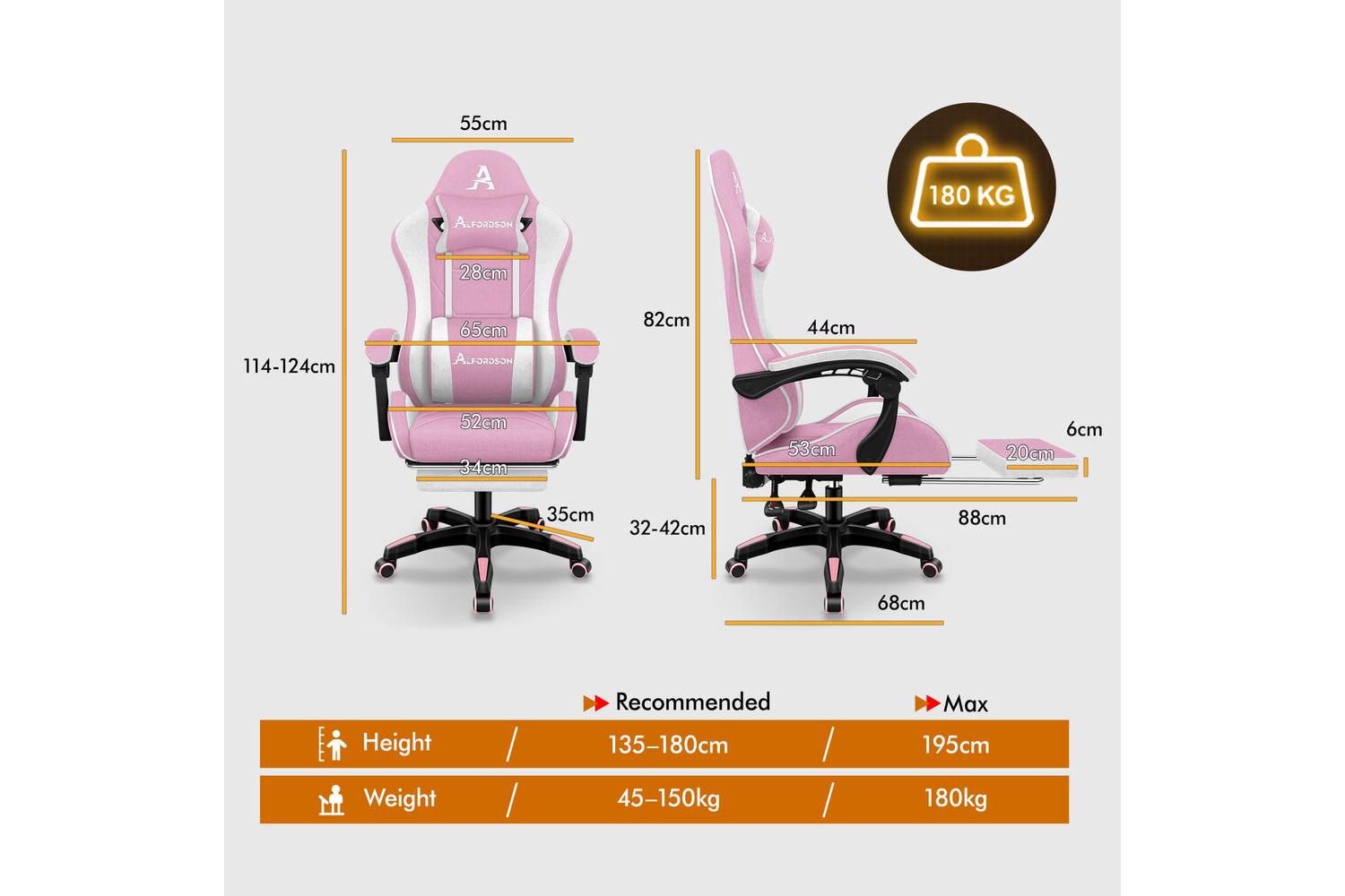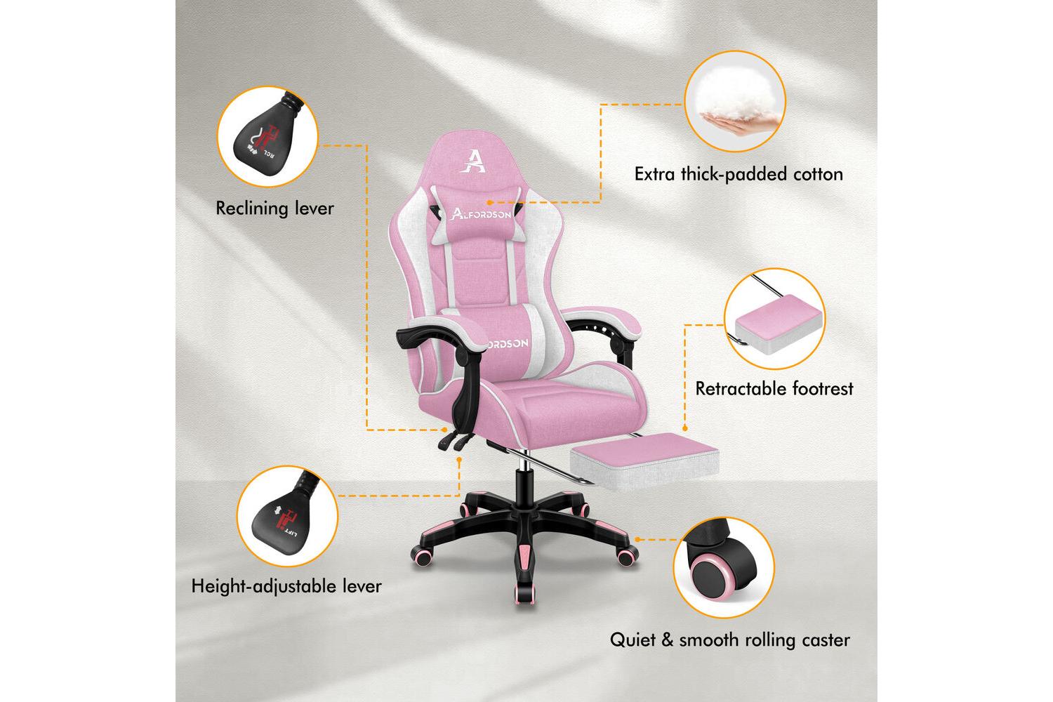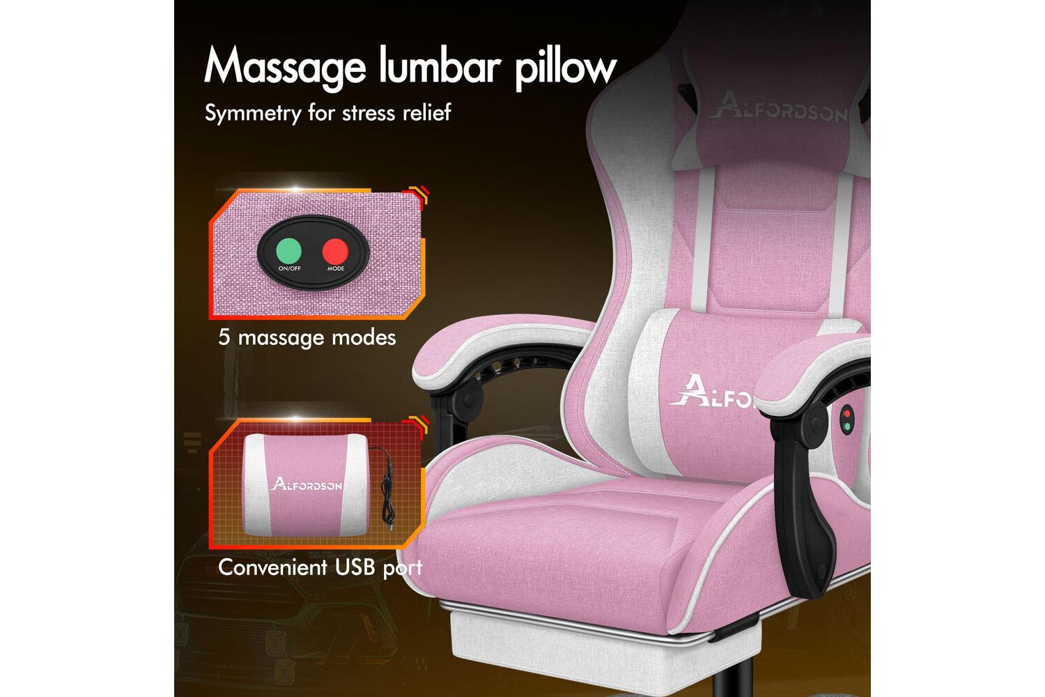 Experience Ultimate Comfort And Style With The Alfordson Massage Gaming Chair Computer Office Chair With Footrest | Fabric | White Pink