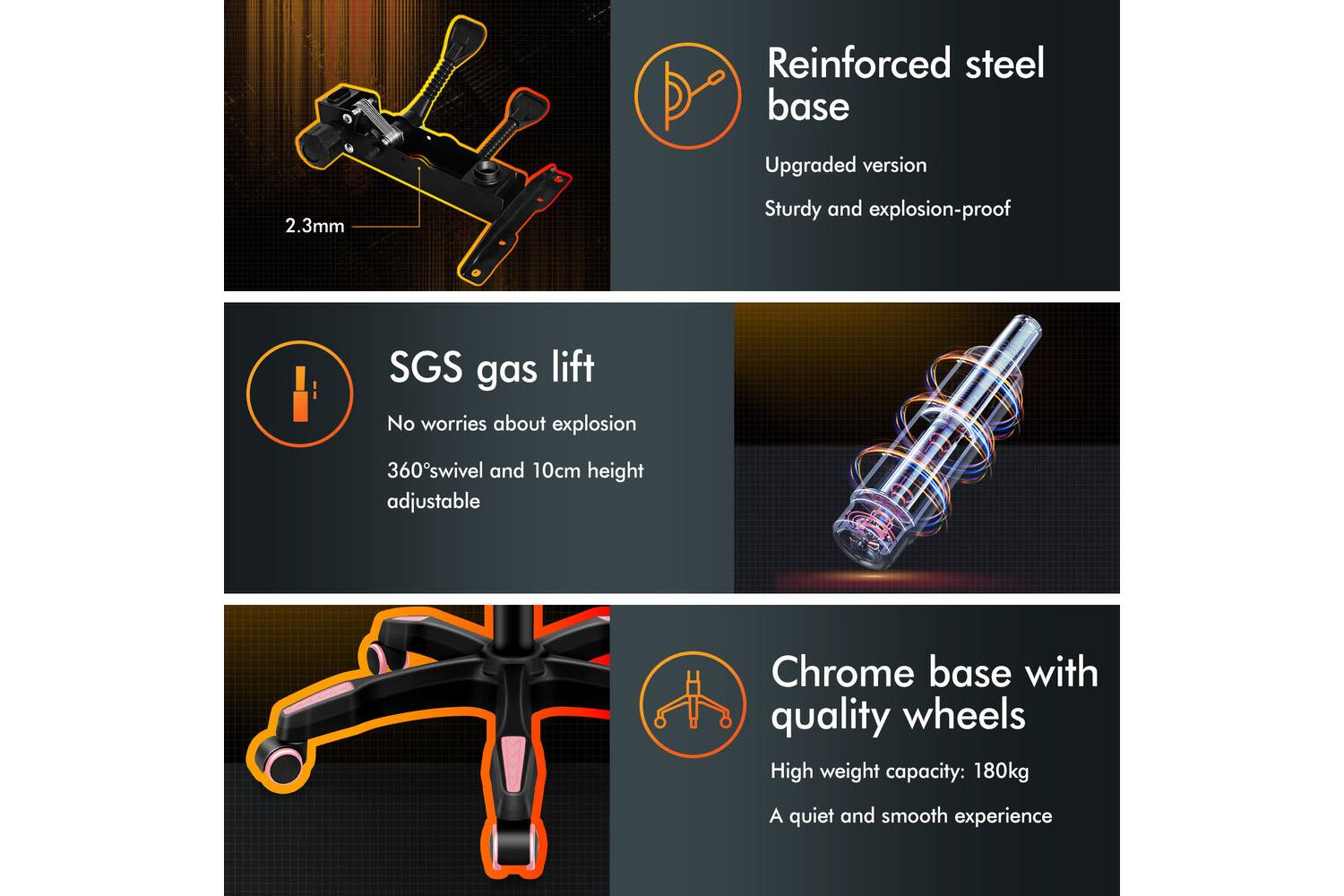 - SGS-approved gas-lift system for safe, smooth height adjustment