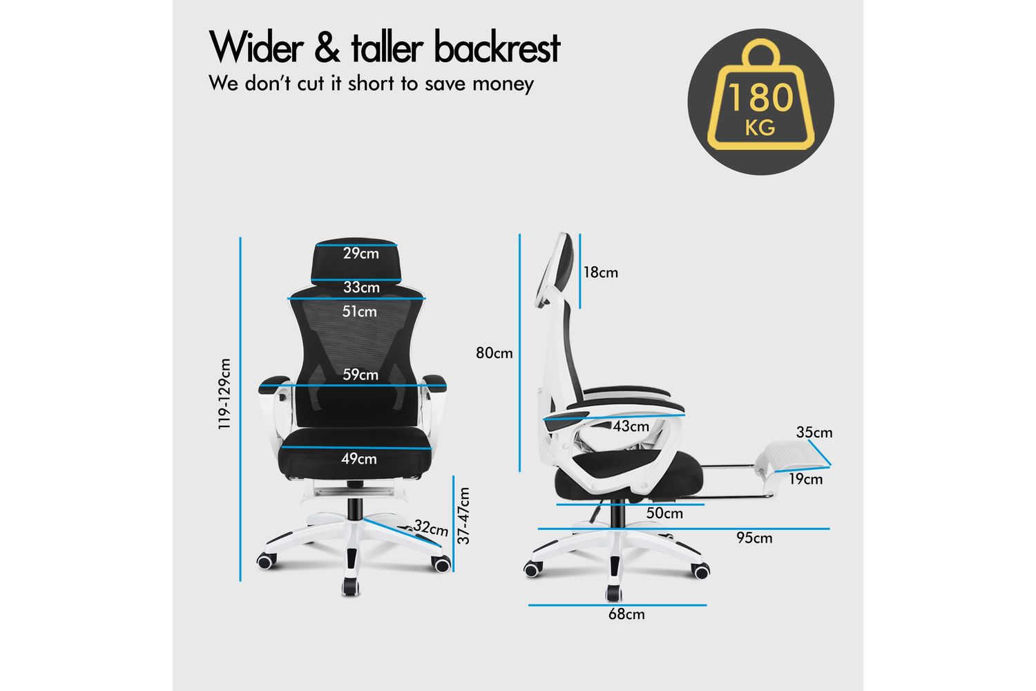 - Wider and taller backrest for superior support