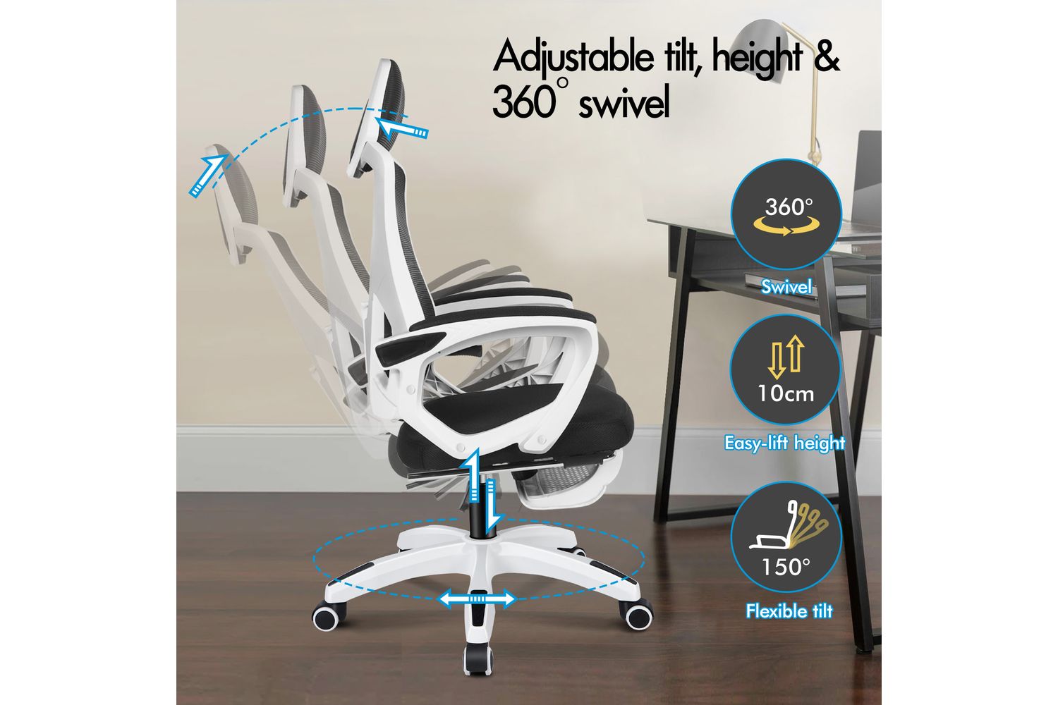 Enjoy customisable comfort with a 3-position backrest adjustment and up to 150-degree recline, perfect for relaxing between tasks or powering through intense work sessions. The retractable padded footrest adds an extra layer of luxury, allowing you to stretch out and unwind. The chair's flexible tilt adjustment and lockable reclining positions let you find your ideal seating angle with ease.