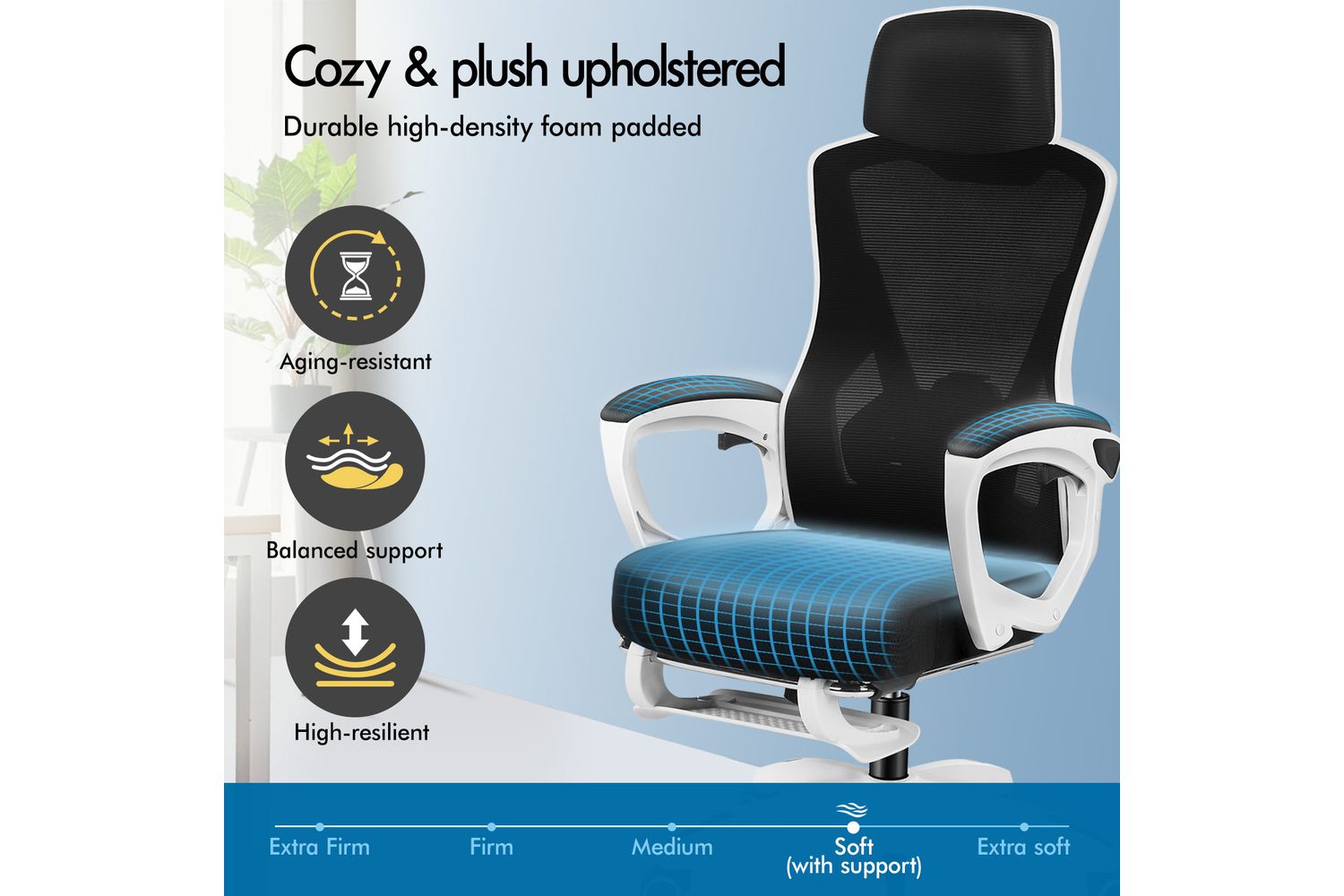 - Material: Mesh fabric, high-resilience foam, wooden board, metal, nylon