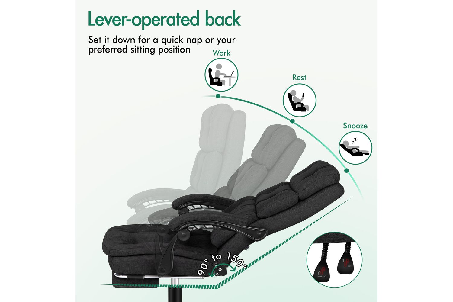 The ALFORDSON chair stands out with its breathable, durable linen fabric in a sleek black finish, seamlessly fitting into any décor. The button tufting and double-stitched upholstery add a touch of timeless grace, making it a statement piece for your workspace. Its ergonomic design contours to your body, providing built-in lumbar and back support to eliminate back and shoulder pressure, so you can focus on your tasks without discomfort.