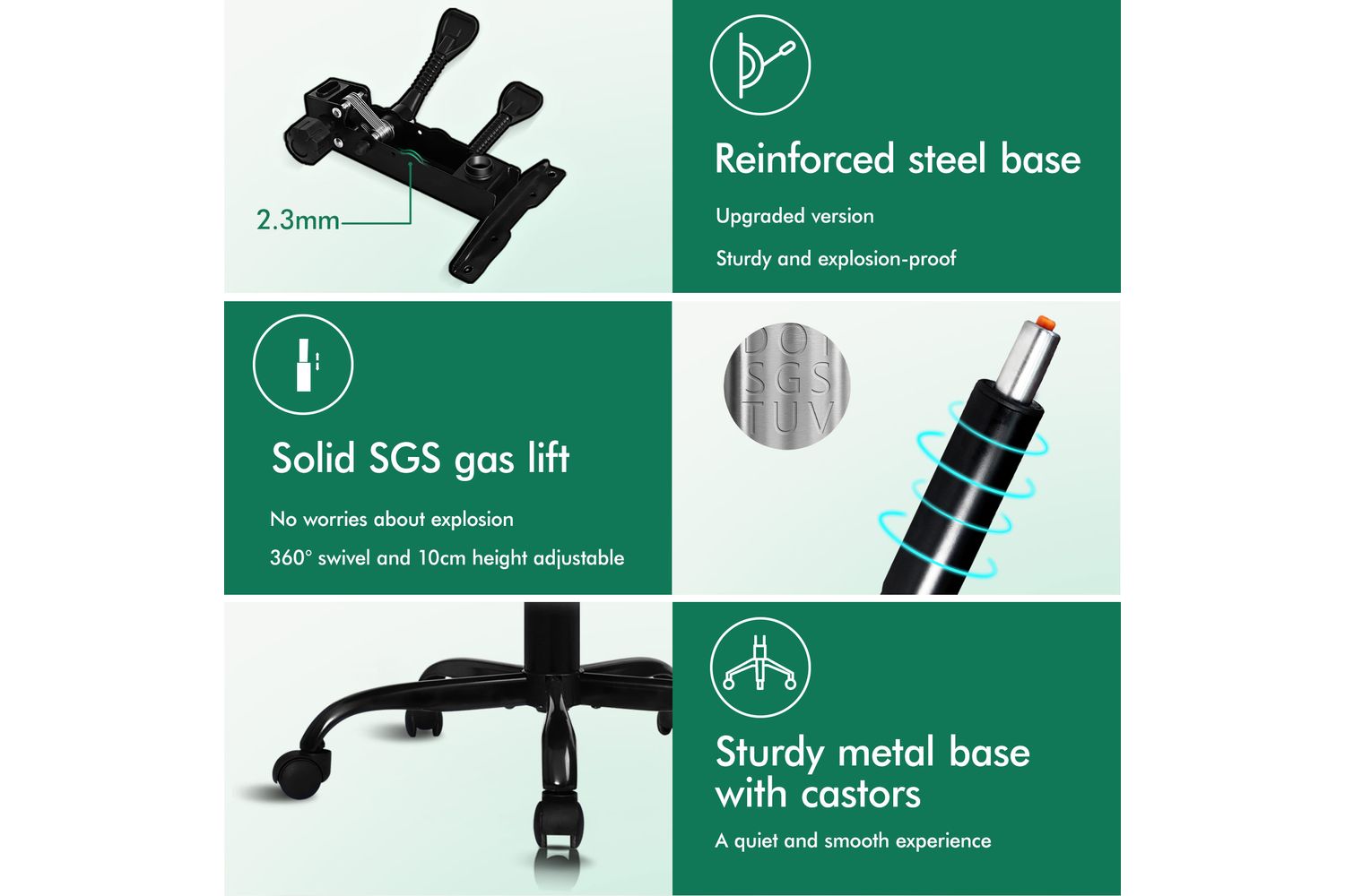 Safety and durability are at the core of the ALFORDSON chair. It features an Intertek approved supreme linen fabric, SGS approved gas-lift for reliable height adjustment, and TUV approved caster wheels for smooth mobility. The triple-layer seat construction—combining linen fabric, high resilience foam, and a sturdy wooden board—ensures lasting support and comfort. With a high weight capacity of 180kg, this chair is built to accommodate a wide range of users.