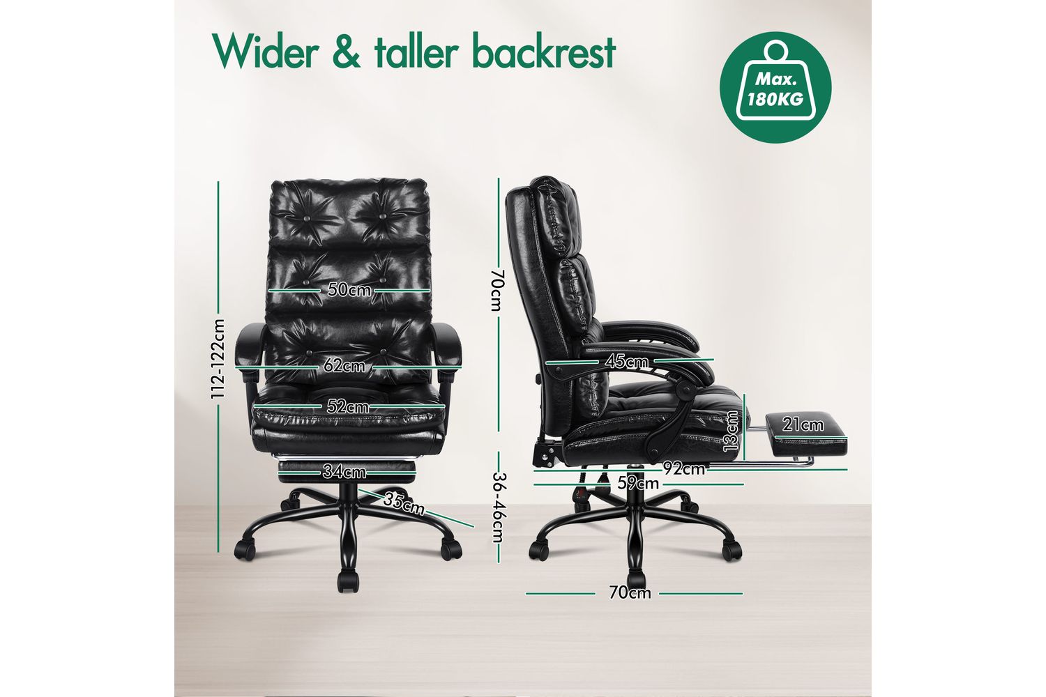 Enjoy the flexibility of a 150-degree reclining backrest, which can be locked at your preferred angle for optimal relaxation. The retractable padded footrest allows you to stretch out and unwind, while the smooth 360-degree swivel and premium universal wheels provide effortless mobility around your workspace. The deluxe PP plastic armrests are wide, supportive, and padded for extra comfort, making this chair perfect for multitasking or extended meetings.