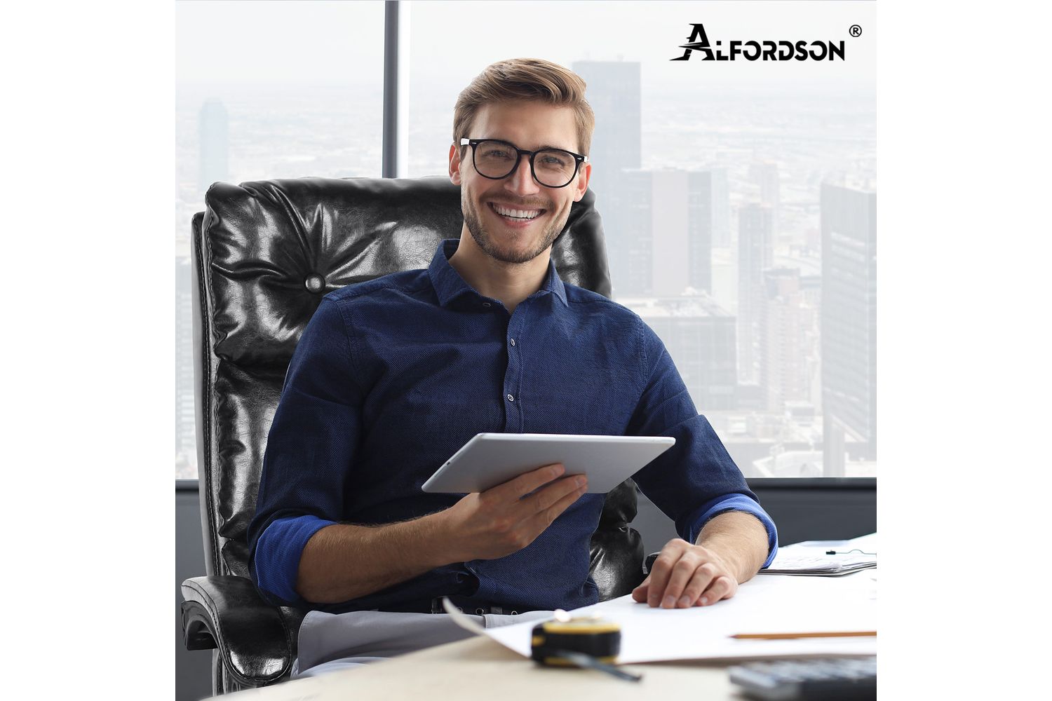 Upgrade your workspace with the ELFORDSON Office Chair Double Layer Desk Chair, designed for those who value both comfort and sophistication in their home or office. This high back swivel chair, finished in a glossy black faux leather, brings a touch of modern elegance to any Irish home office, boardroom, or business environment. Whether you are working long hours at your desk or relaxing with a good book, this chair is engineered to provide the ultimate seating experience.
