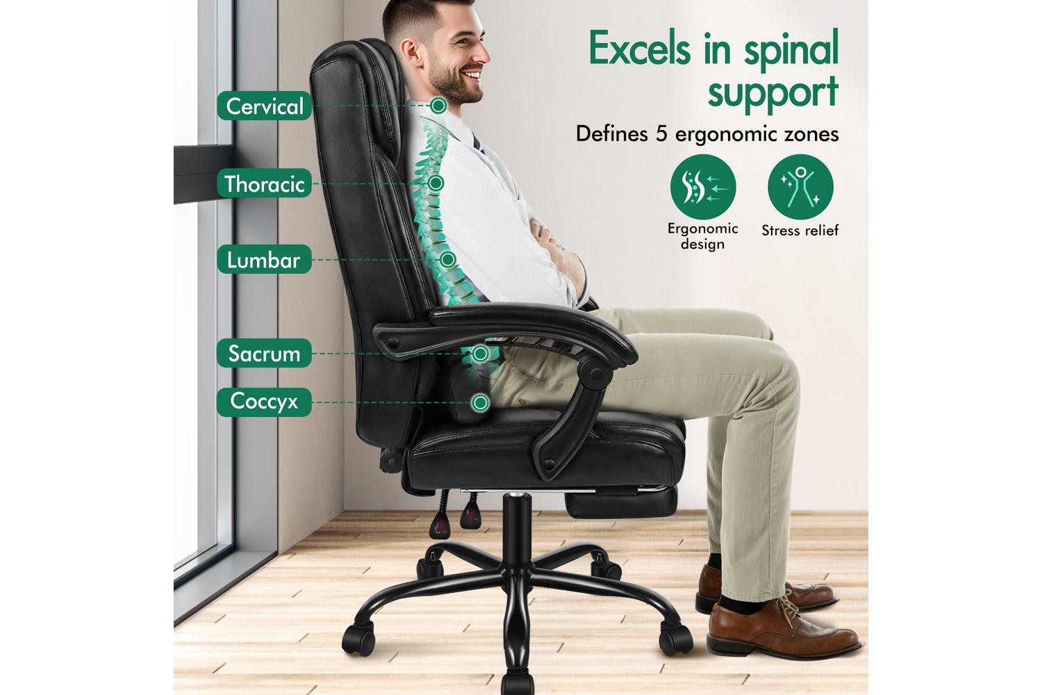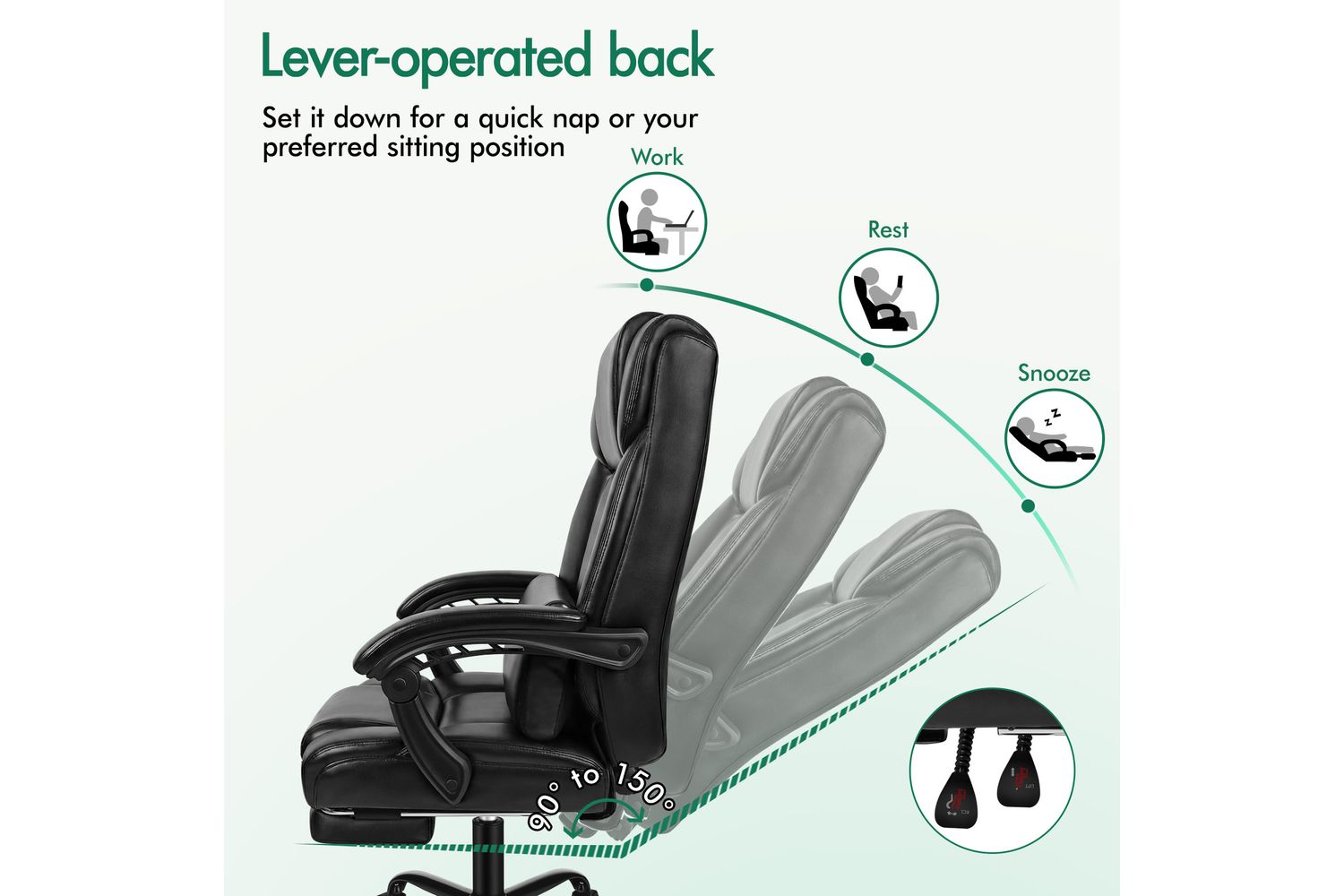 - Back Recline: Up to 150 degrees
