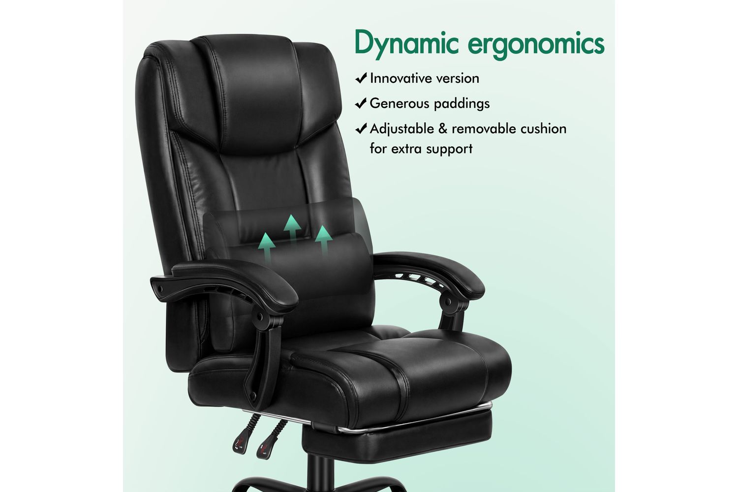 - Extra-large adjustable lumbar cushion