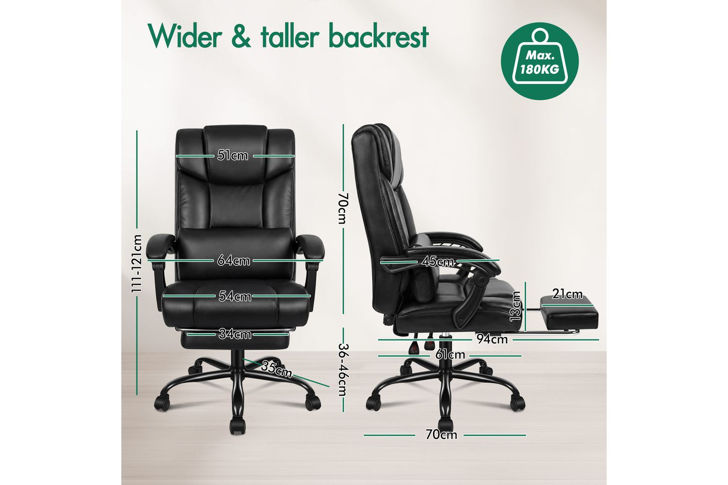 - Weight Capacity: 180kg