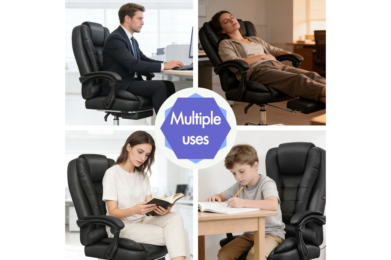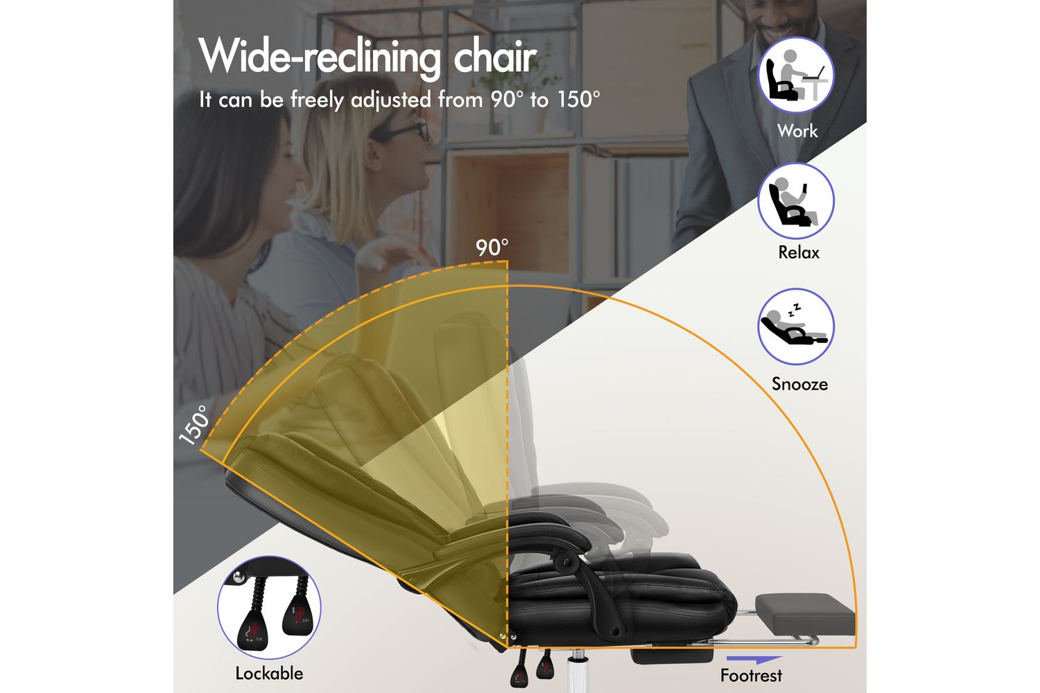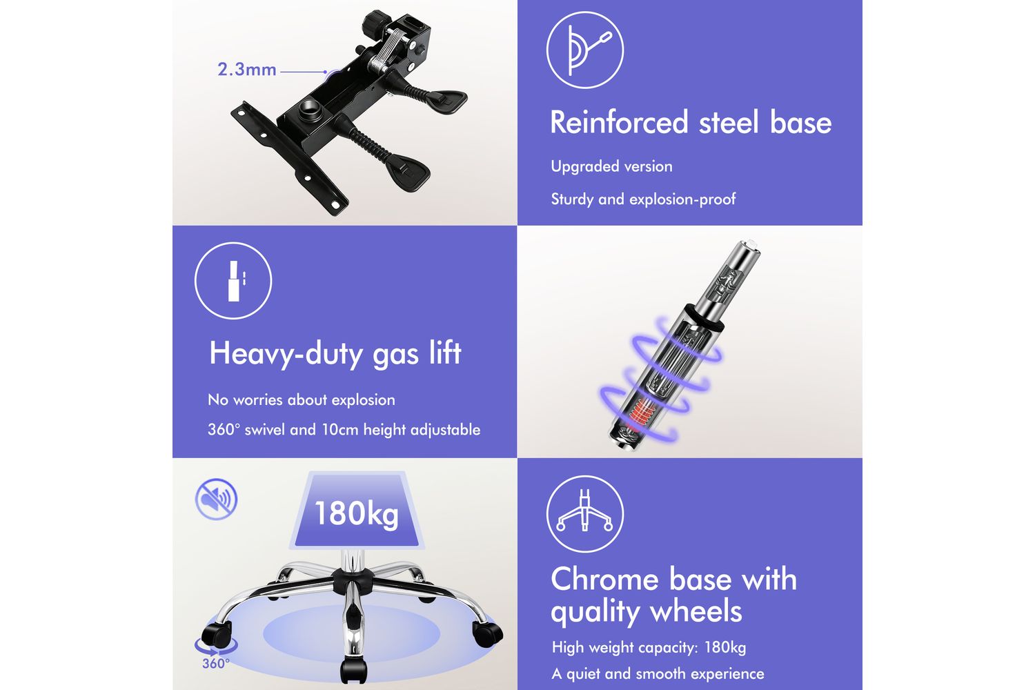 The Alfordson Office Chair is engineered for durability and ease of use. The high-gloss chrome base, TUV certified casters, and Intertek approved PU leather ensure long-lasting quality and effortless mobility. The SGS approved gas-lift system allows for smooth height adjustment, while the 150 degree back recline and 360 degree swivel let you find your perfect position and lock it in place. Generous foam padding and deluxe padded armrests offer extra comfort, making this chair a standout choice for anyone seeking a supportive and stylish seating solution.
