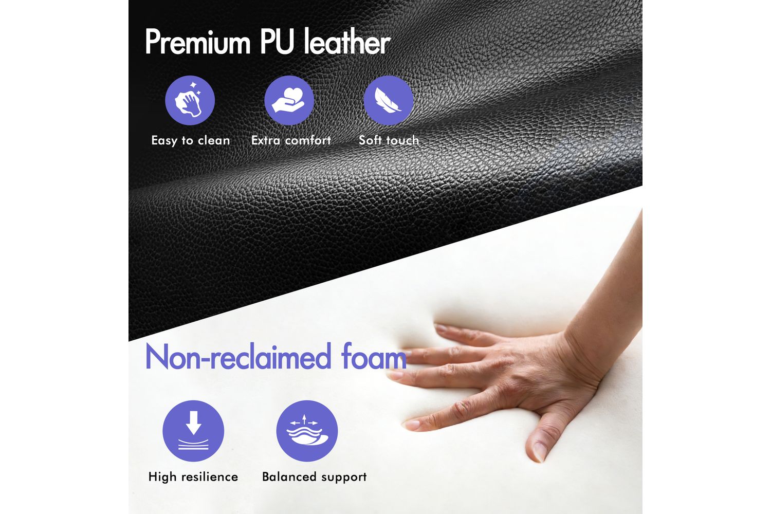 - Seat: Triple-layer (PU leather, resilience foam, wooden board)