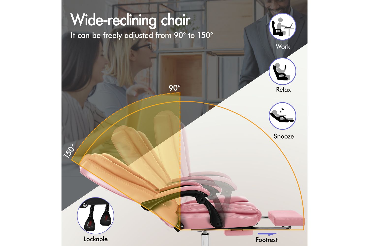 - Up to 150 degree back recline with lockable positions