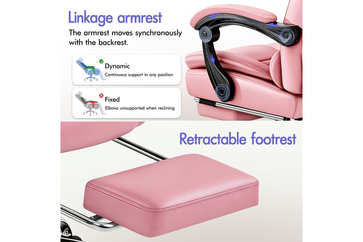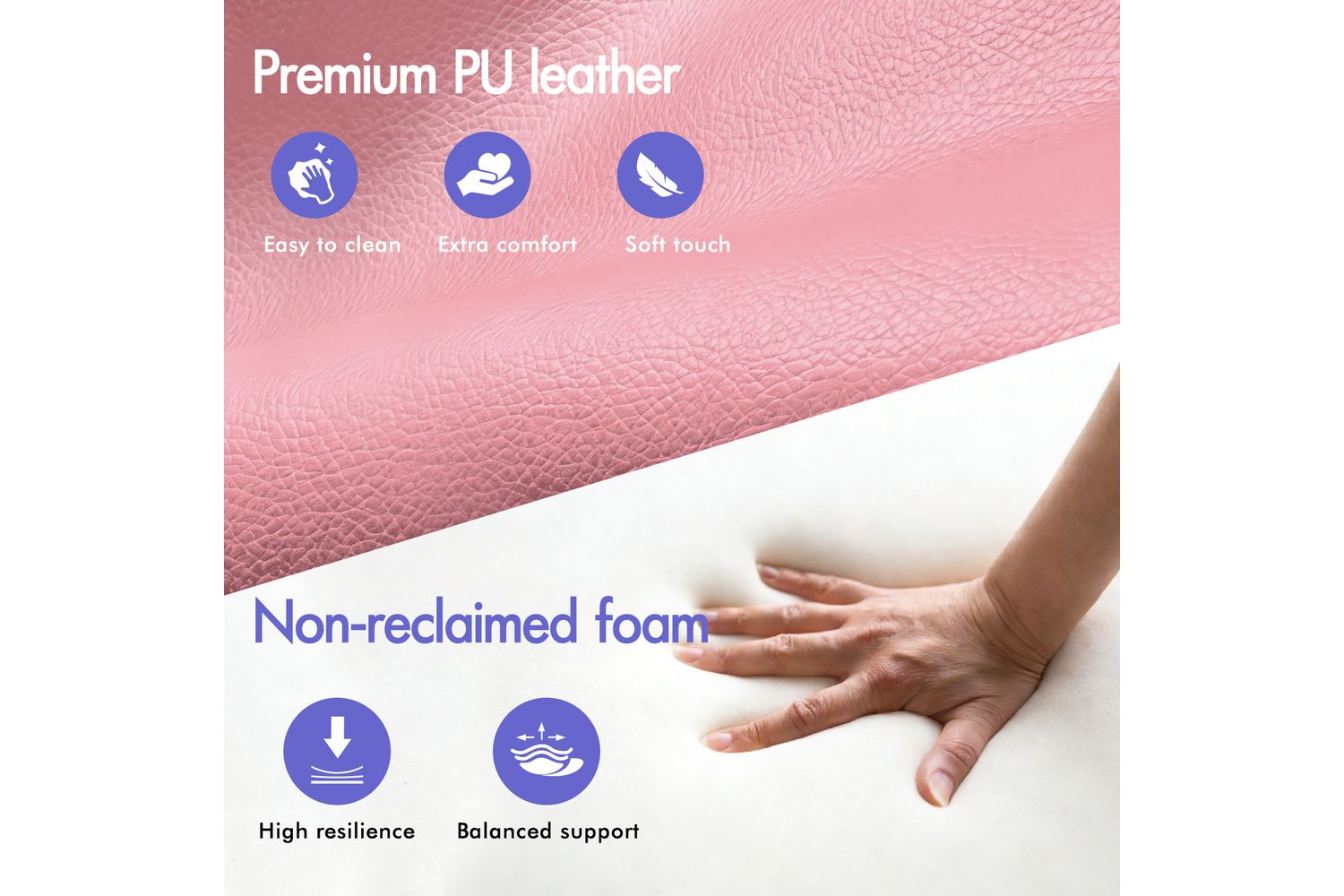 - Premium faux leather upholstery in pink