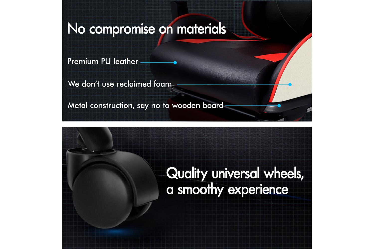 Experience the difference with an all-metal frame racer chair that is built to last. The ELFORDSON chair features a robust chrome base and TUV certified casters, ensuring smooth movement and stability on any surface. The Intertek approved PU leather upholstery is not only luxurious to the touch but also easy to clean, making it ideal for everyday use. Generous foam padding and a triple-layer seat construction provide lasting comfort, even during marathon gaming sessions or long workdays.