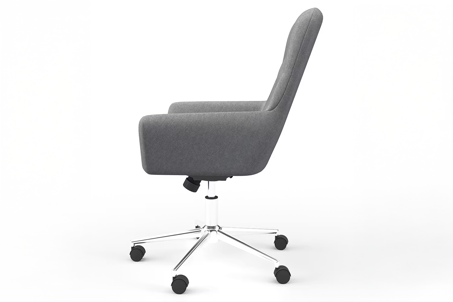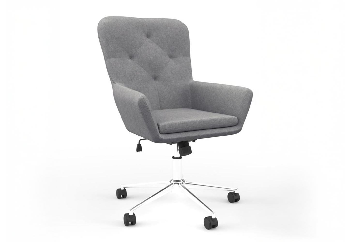Perfectly showing classic styling with a modern twist, the Benjamin Chair looks amazing in any home office setup. The neutral grey fabric combined with the button and stitching style backrest gives an elegant yet simple look, whilst the built-in armrests and cushioned seat ensure the chair is about more than just appearance. Finished with a beautiful chrome base, the Benjamin features height adjustment and a locking tilt mechanism with tension control.