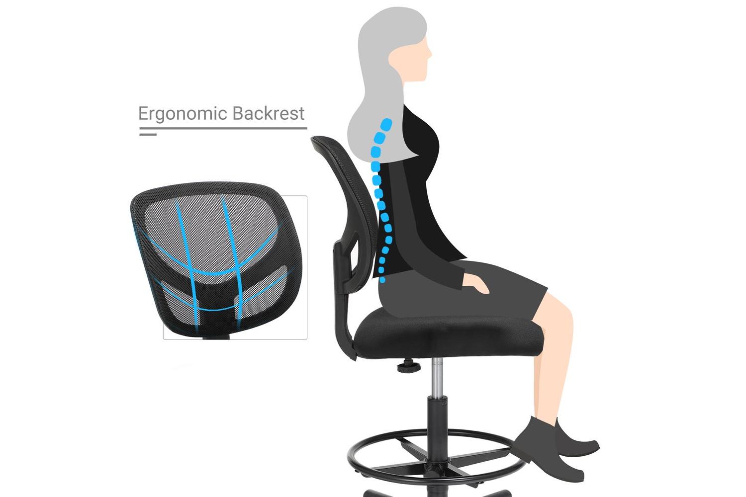 Upgrade your workspace with the SONGMICS Drafting Chair, expertly designed for comfort, support, and flexibility. Whether you are working from home, designing, or tackling creative projects, this ergonomic office chair is the perfect addition to any Irish home office or studio. With its adjustable height and breathable mesh backrest, this chair ensures you stay comfortable and productive throughout the day.