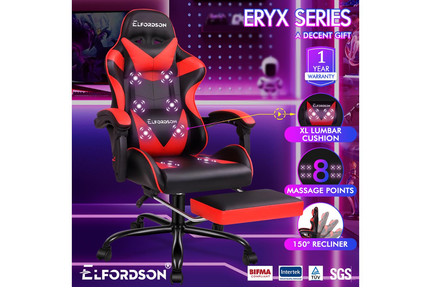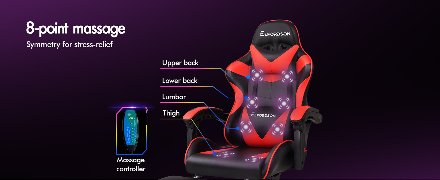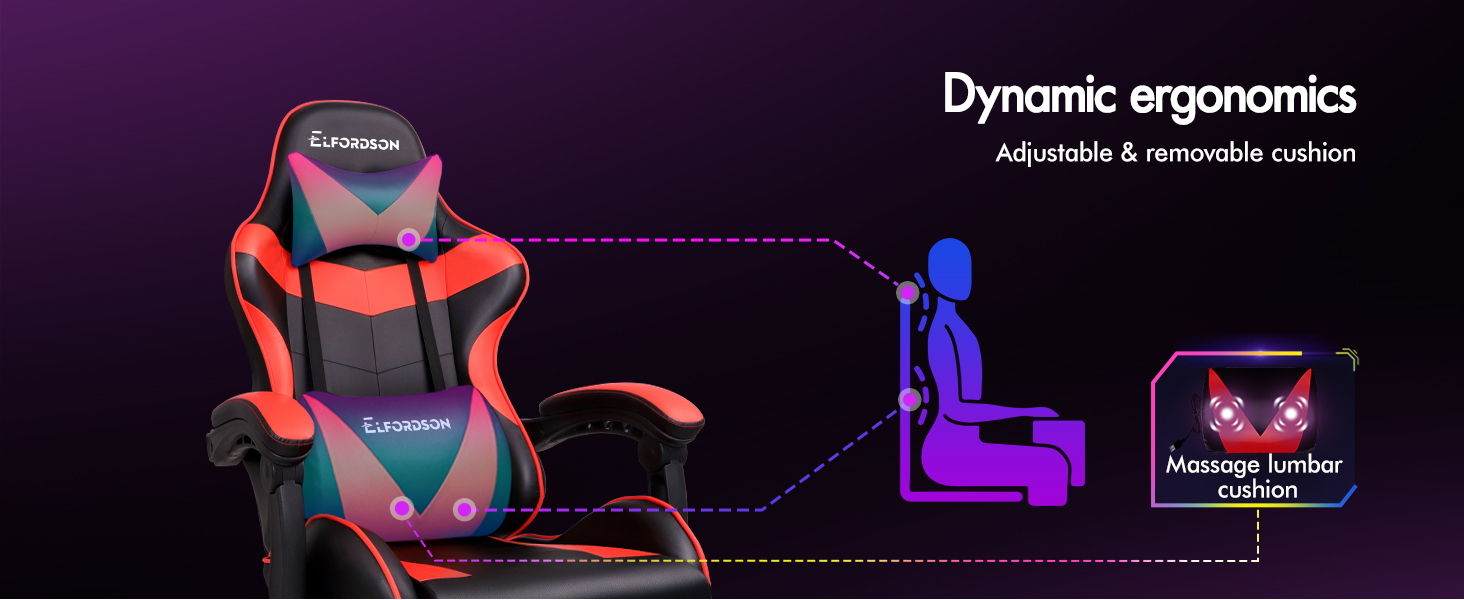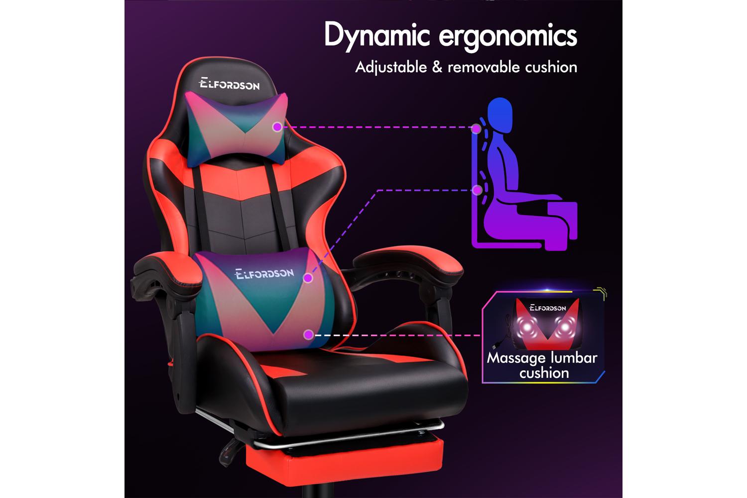 Elfordson 2-Point Massage Gaming Chair with Lumbar Cushion | Red