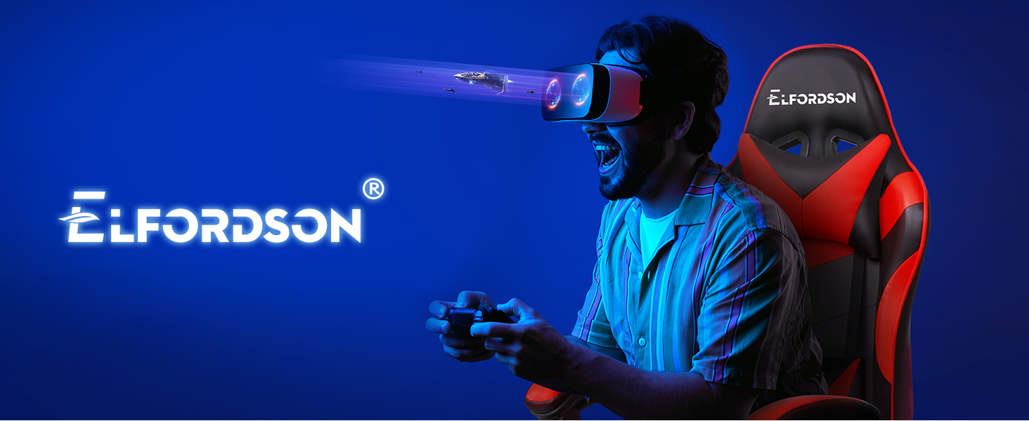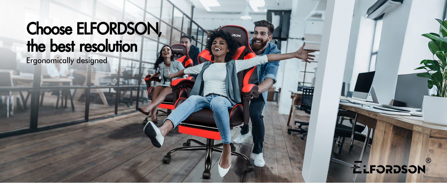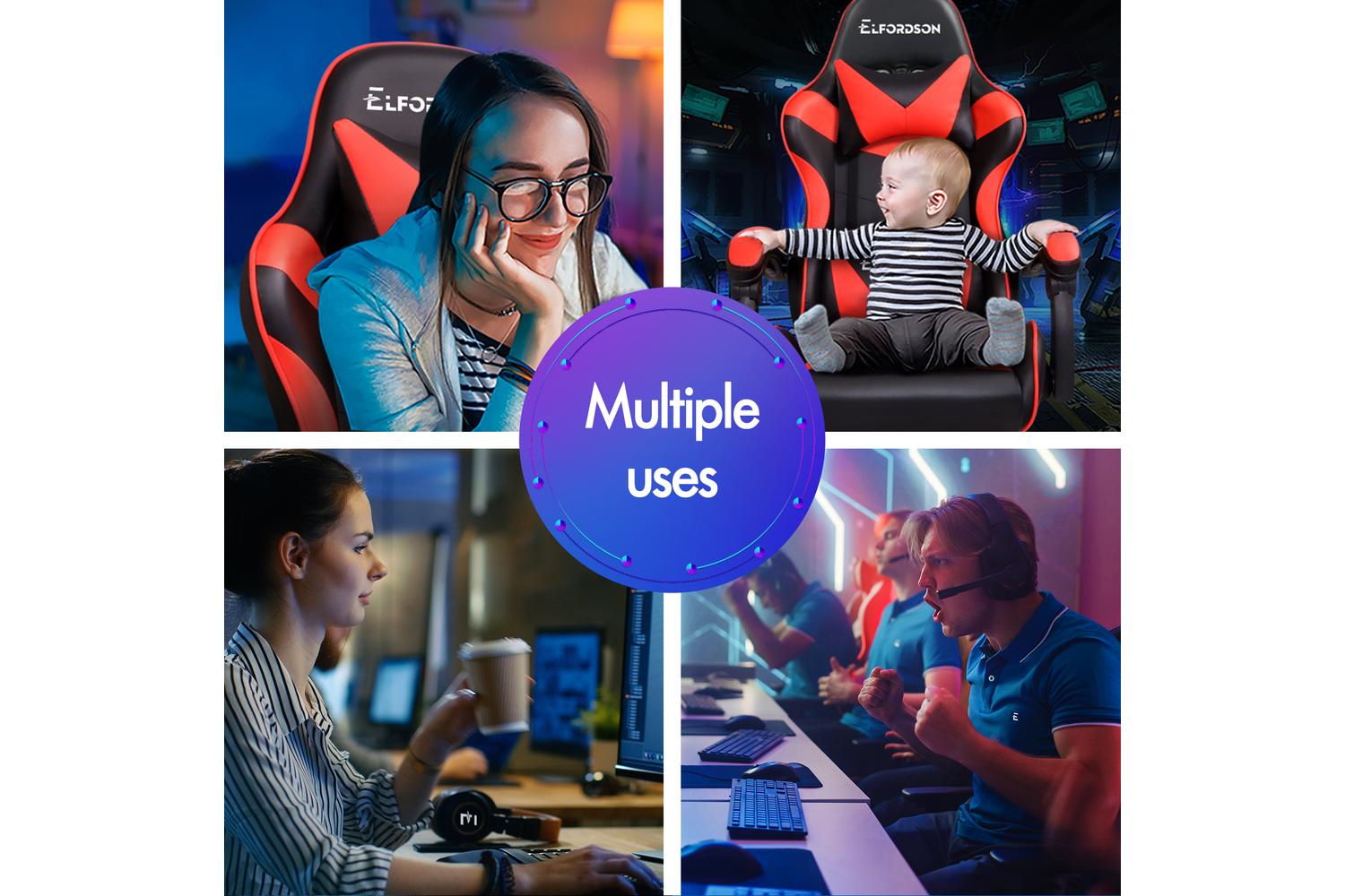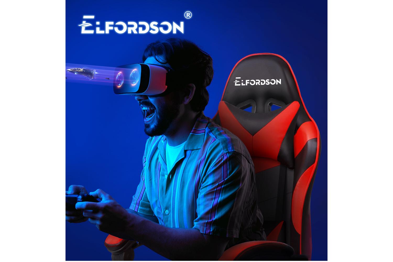 Elfordson 2-Point Massage Gaming Chair with Lumbar Cushion | Red