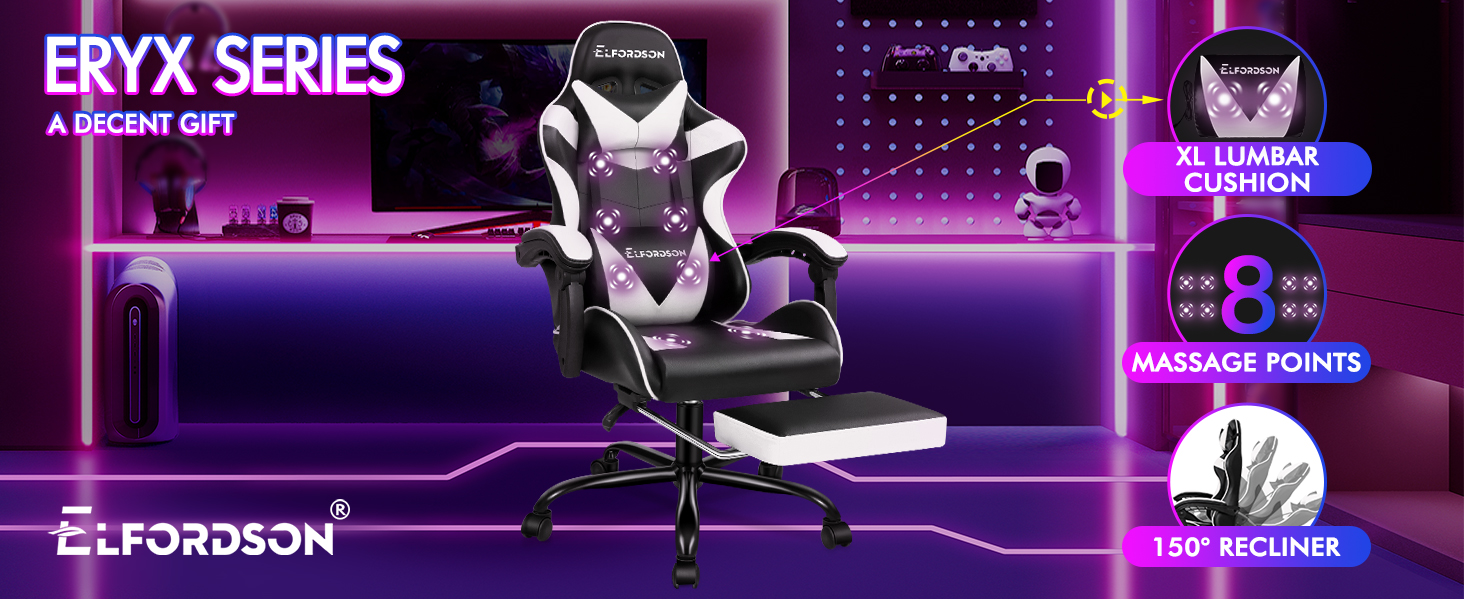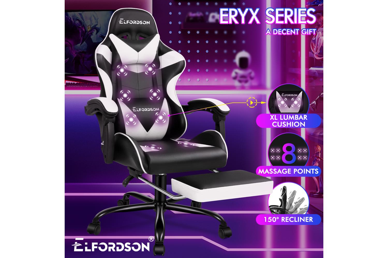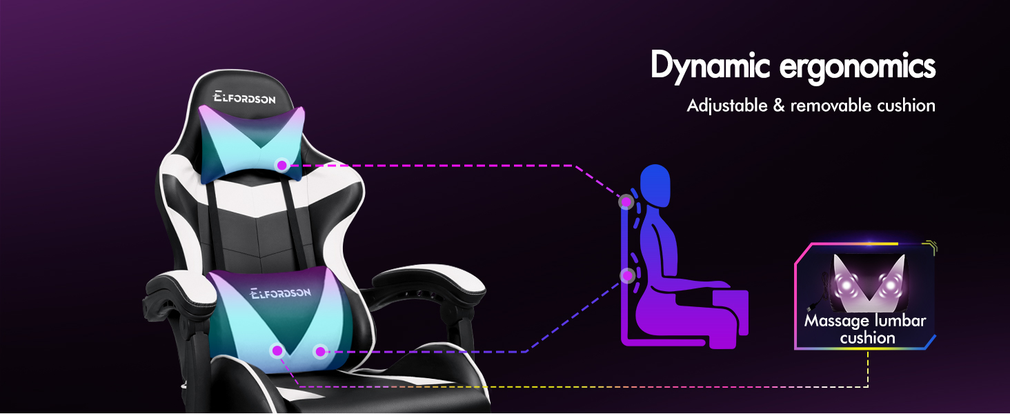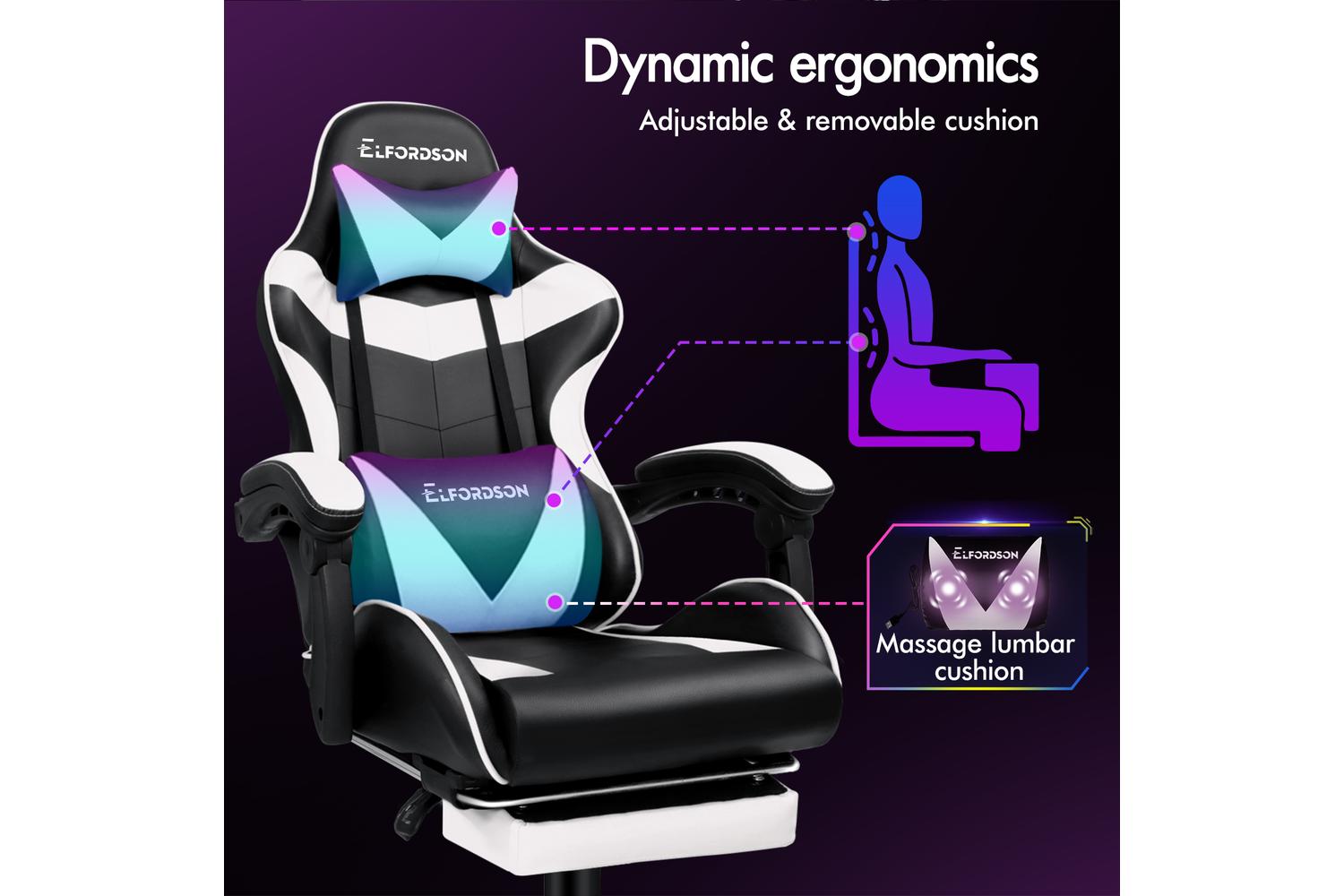 Elfordson 2-Point Massage Gaming Chair with Lumbar Cushion | White