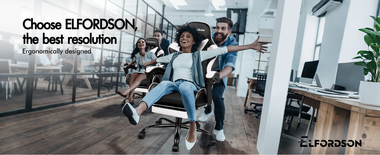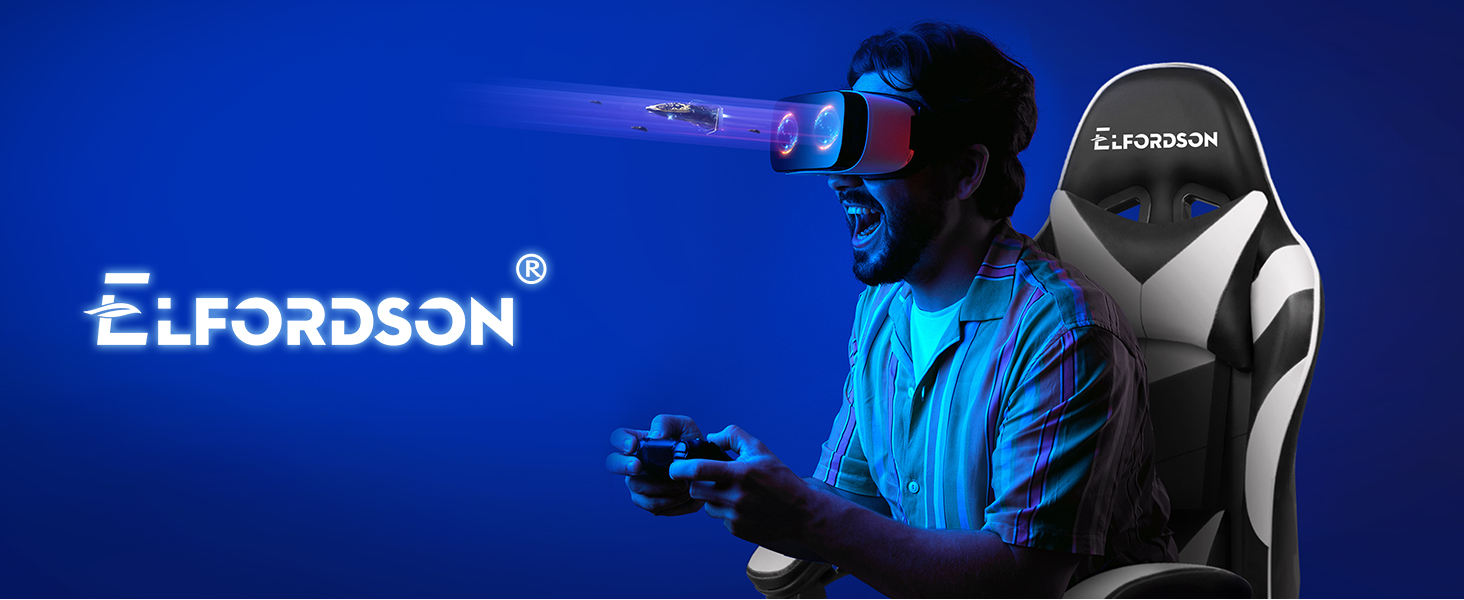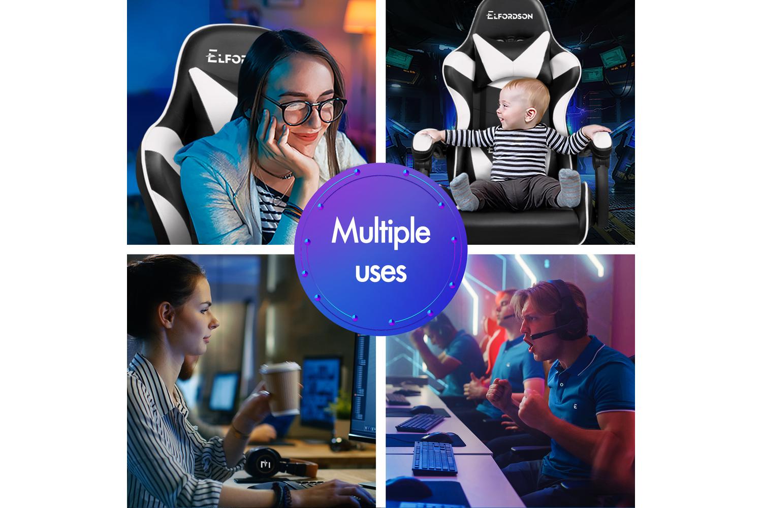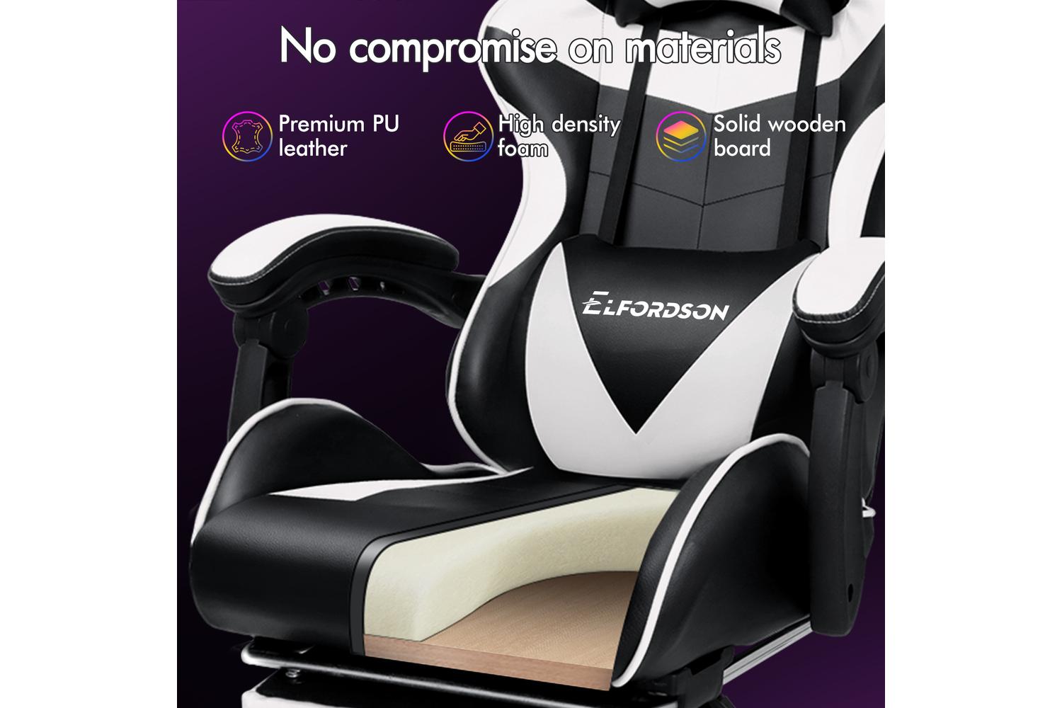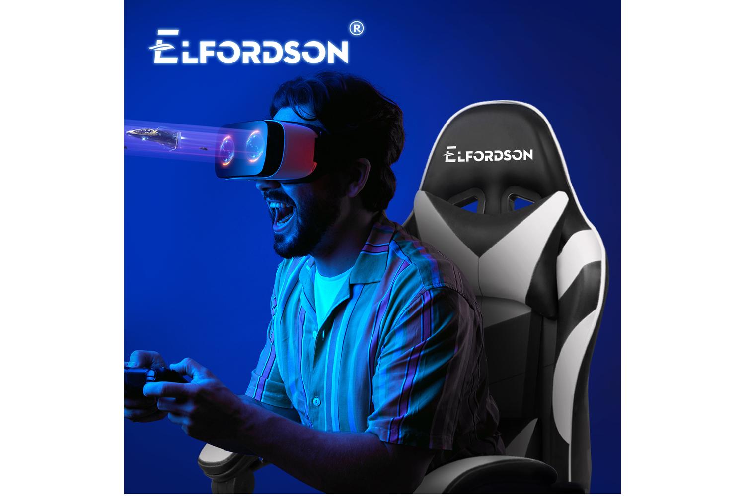 Elfordson 2-Point Massage Gaming Chair with Lumbar Cushion | White