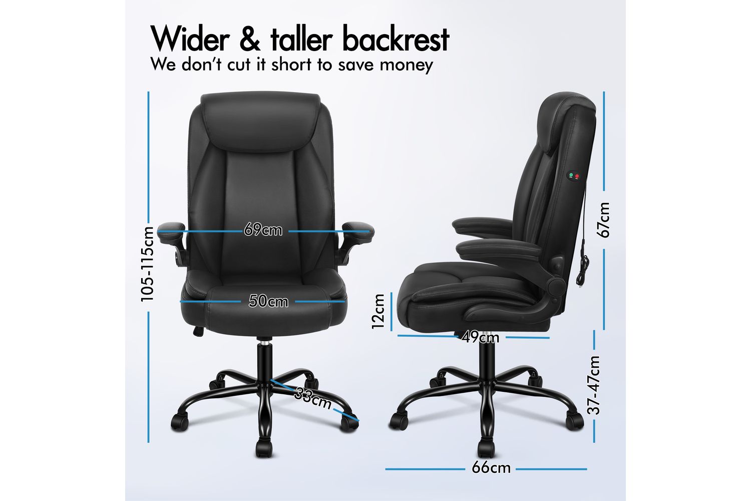 - Seat Dimensions: Depth 49cm, Width 50cm, Back Height 67cm