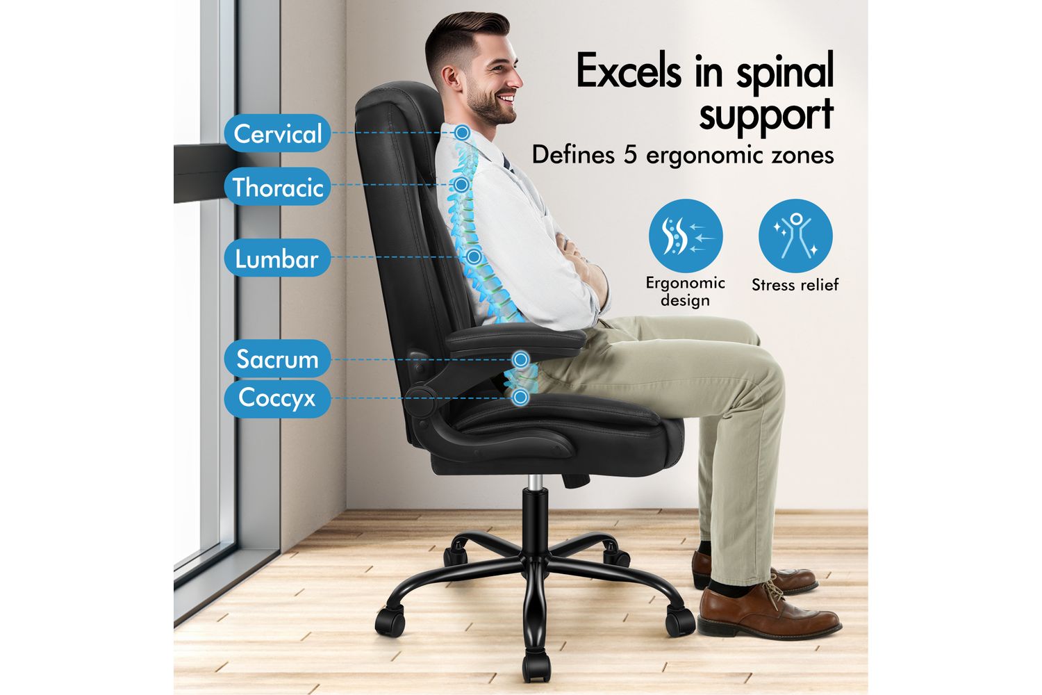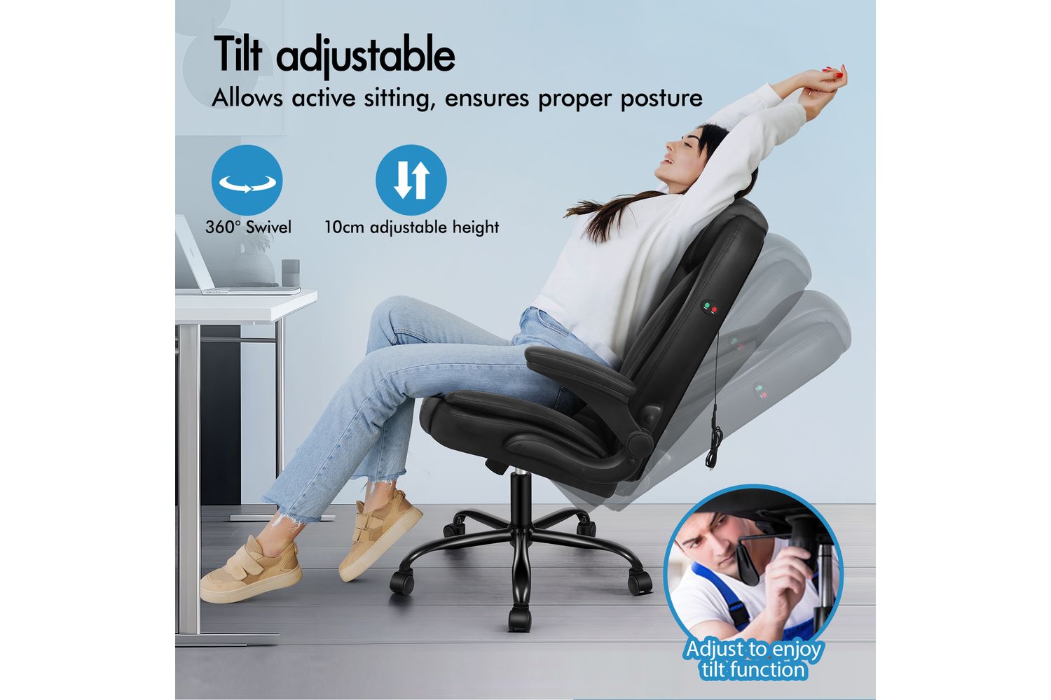 The ELFORDSON chair goes beyond comfort, with its sturdy chrome base and TUV certified caster wheels ensuring lasting use. Along with the 360-degree swivel and 10cm adjustable SGS-approved Gas-Lift system, Alfordson chair becomes a reliable partner for your professional or personal space.