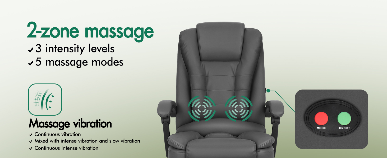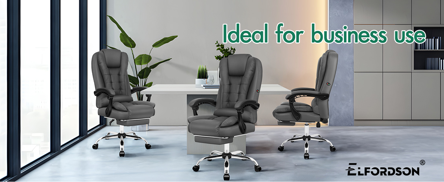 The ELFORDSON office chair features an ergonomic design with a wrapping high back, perfectly fits your body shape and provides comfy support for your upper and lower back. The 2-point massage lumbar system helps to ease muscle pressure during long days at the desk, with 3 intensity levels and 5 massage modes to achieve personalized comfort, while 137cm integrated USB cable enables flexible device powering beyond wall socket limits.