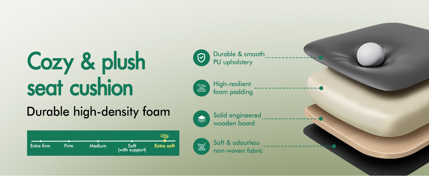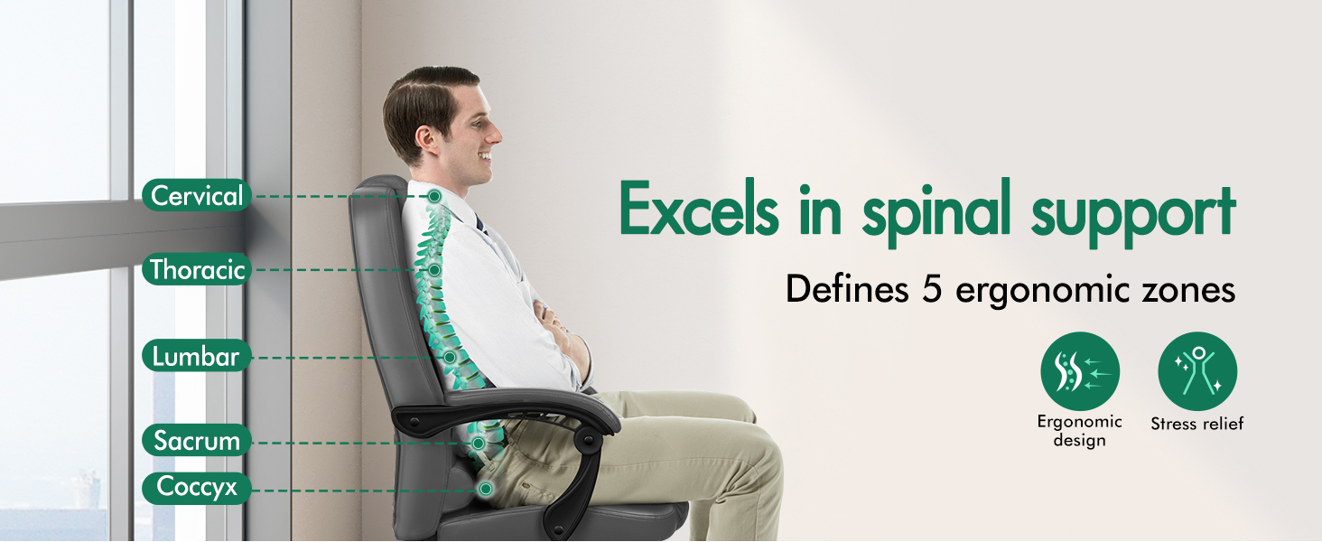 With dual-layered cushion in the backrest and a deep 11cm padded seat, this executive office chair cradles you in comfort that lasts. The whole-piece molding foam provides a durable resilience all the time. The wider and taller desk chairs bring you ultimate ease, offering effortless relaxation for extended use during working or studying.
