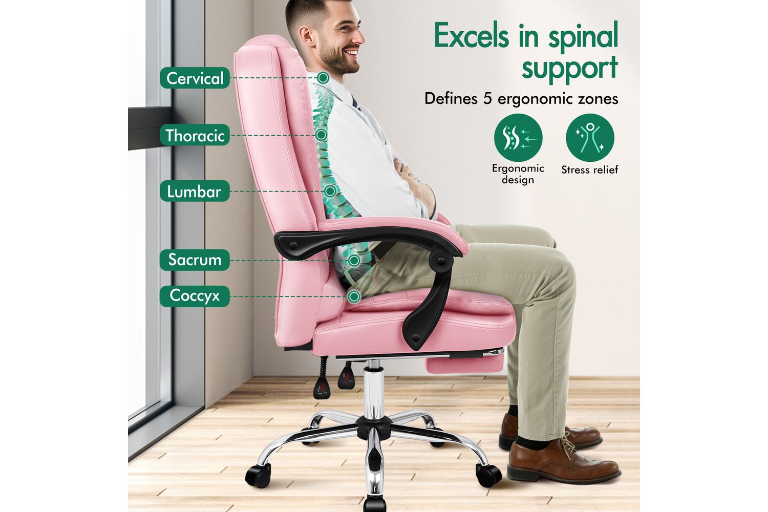 Experience five-star luxury at its best with the TUV-certified chrome base and Intretek approved lustrous pink-hued PU leather. The SGS-approved Gas-Lift system ensures a seamless functionality that transcends the ordinary. It’s not simply a chair, it’s your bespoke luxury station.