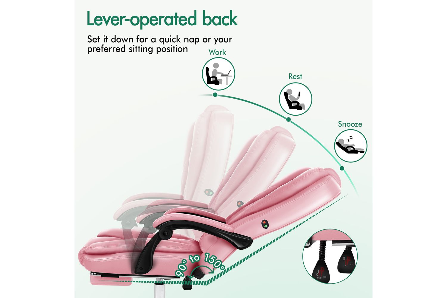 - Recline adjustment up to 150 degrees with the choice to lock your desired position.