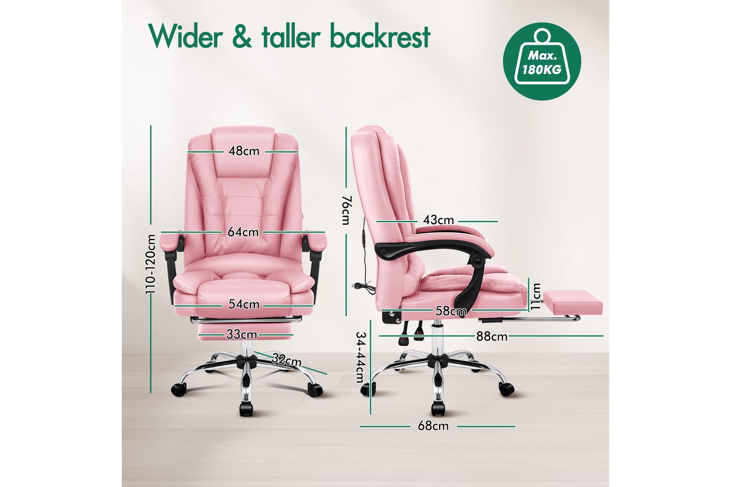 - High weight capacity of up to 180kgs.