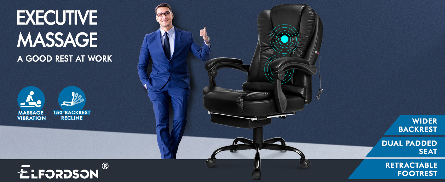 Elfordson 2-Point Massage Office Chair with Footrest | Black is rated