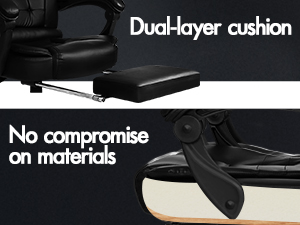 We do not compromise on materials. The massae gaming chair adopts premium PU leather outside, which resists oil and water, making your computer chair massage glossy and clean all the time. With pocket spring support inside the seat, you will feel comfy with your hip muscles. The whole-piece molding foam provides a durable resilience all the time.