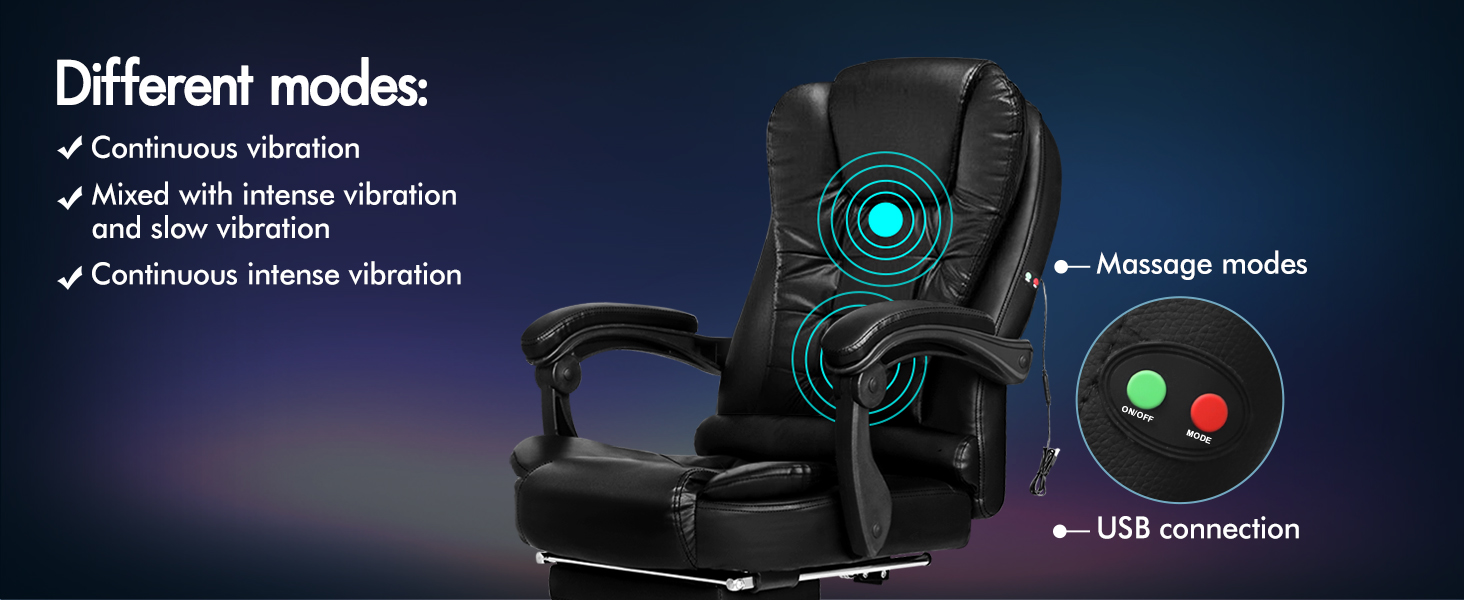 With the massage vibration function at back and foam padded seat, you will feel at ease and supported throughout prolonged sitting periods. Stress relief reaches 5 regions on cervical, thoracic, lumbar, sacrum & coccyx.