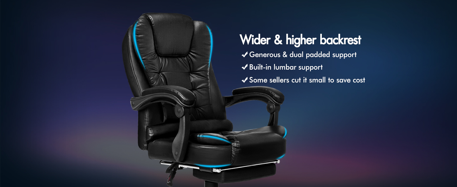 With dual padded in the backrest & 6.8 cm-thickened upholstered padded in the seat, the ergonomic office chair with whole-piece molding foam brings you a full day comfort. The wider and taller office executive chairs bring you ultimate ease even you are strong.
