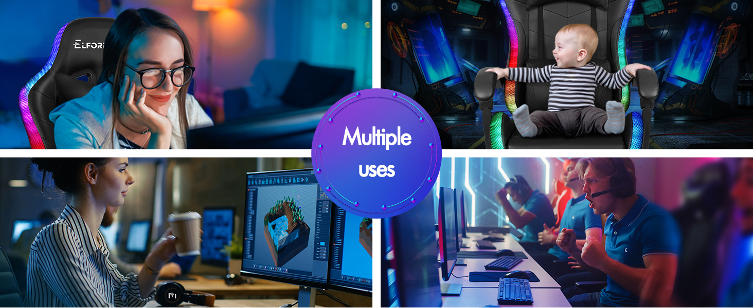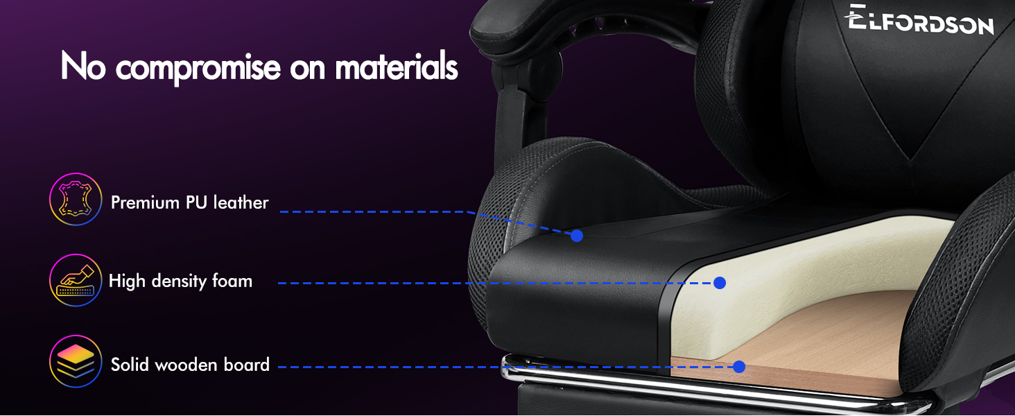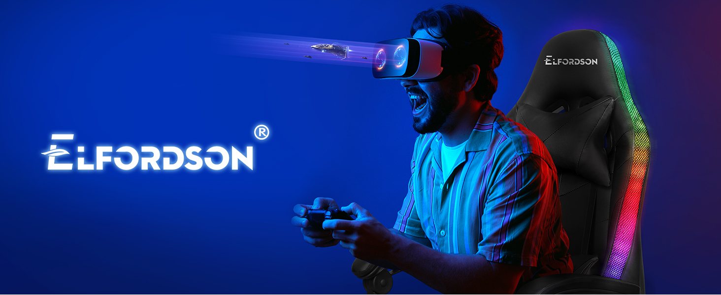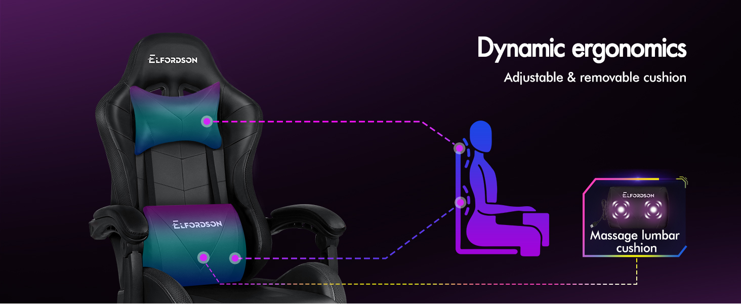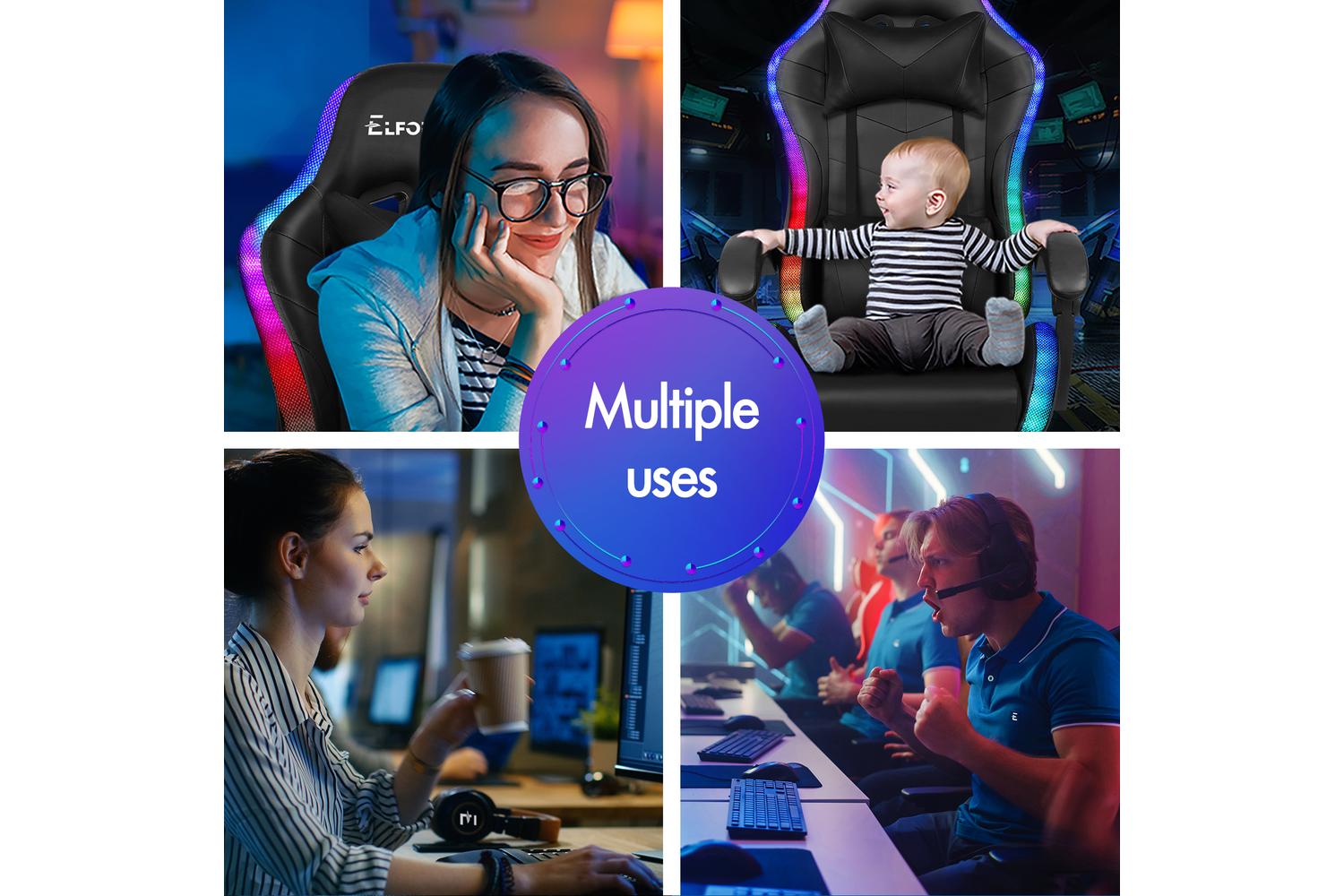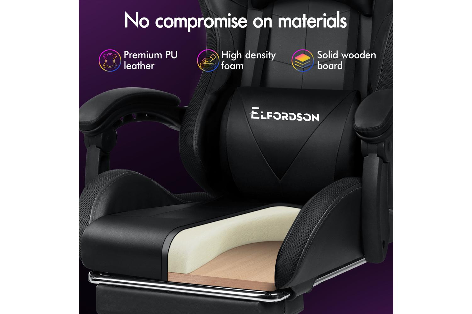 Elfordson 8-Point Massage Led Gaming Chair with Footrest | Black