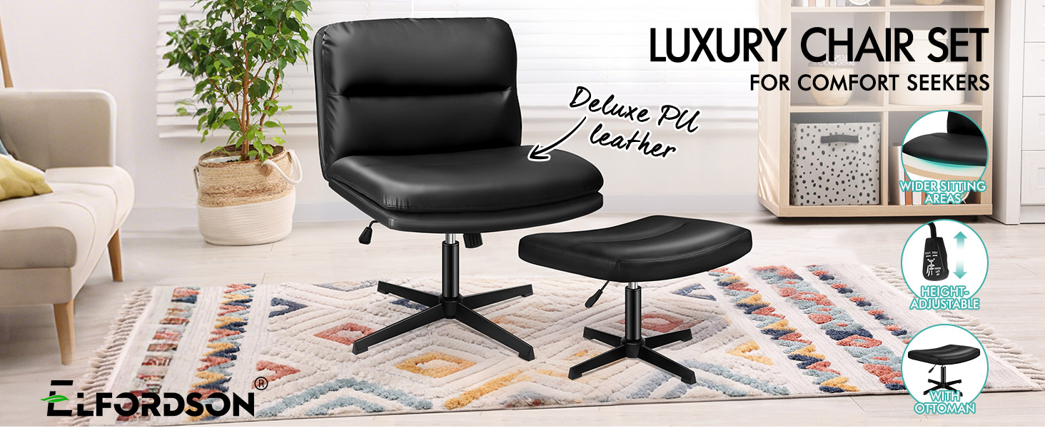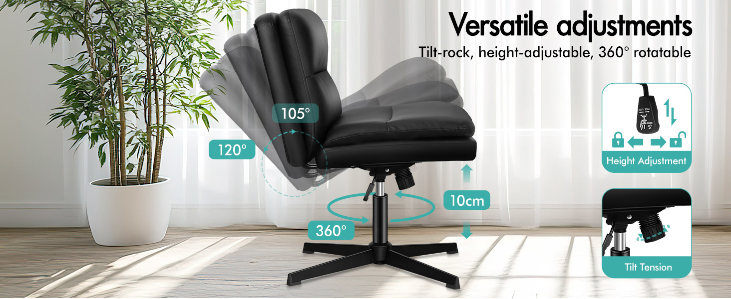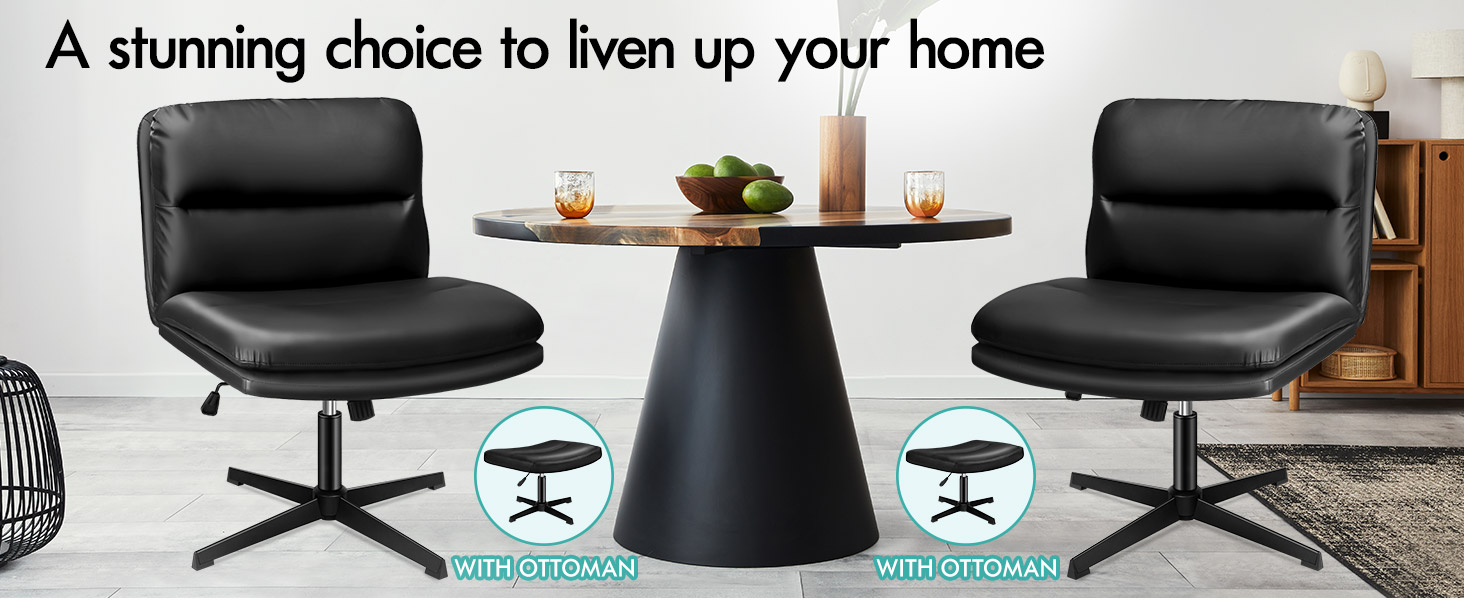 The space-saving armless chair that fits under your desk. 105° to 120° tilt-rock function, 10cm in seat height adjustments (both chair and ottoman), and 360° rotatable gas lift, making this work chair adapts seamlessly to any home office setting.