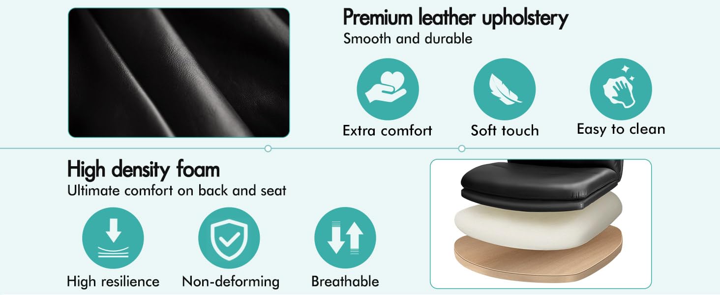For optimal comfort, the chair comes with a bonus ottoman, while others don’t. Most of us sit or stand all day, so blood tends to collect in the lower extremities. Resting your feet on the height-adjustable and swivel footstool helps restore normal blood circulation.