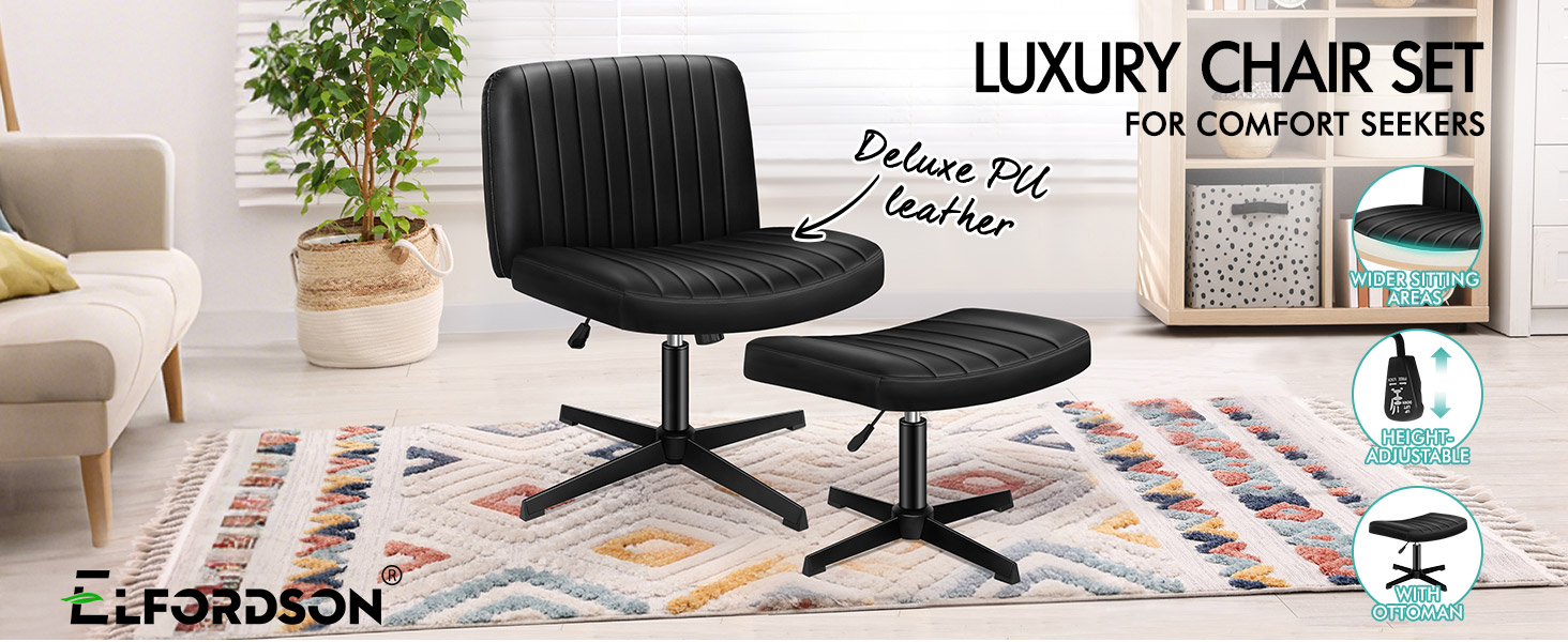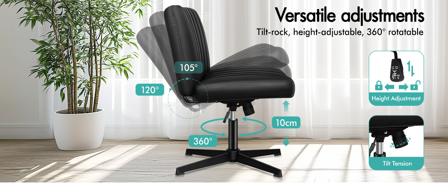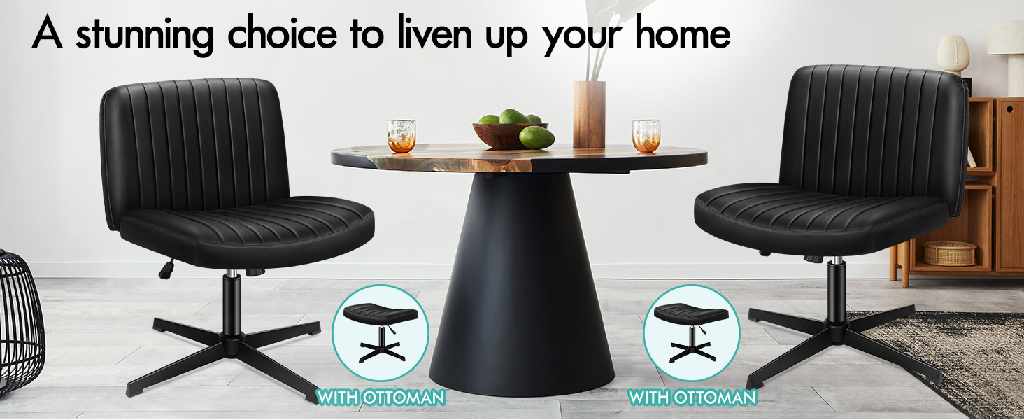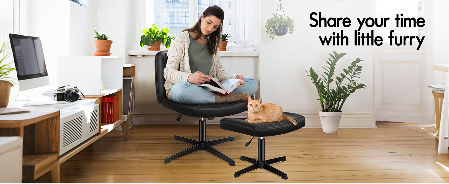The space-saving armless chair that fits under your desk. 105° to 120° tilt-rock function, 10cm in seat height adjustments (both chair and ottoman), and 360° rotatable gas lift, making this work chair adapts seamlessly to any home office setting.