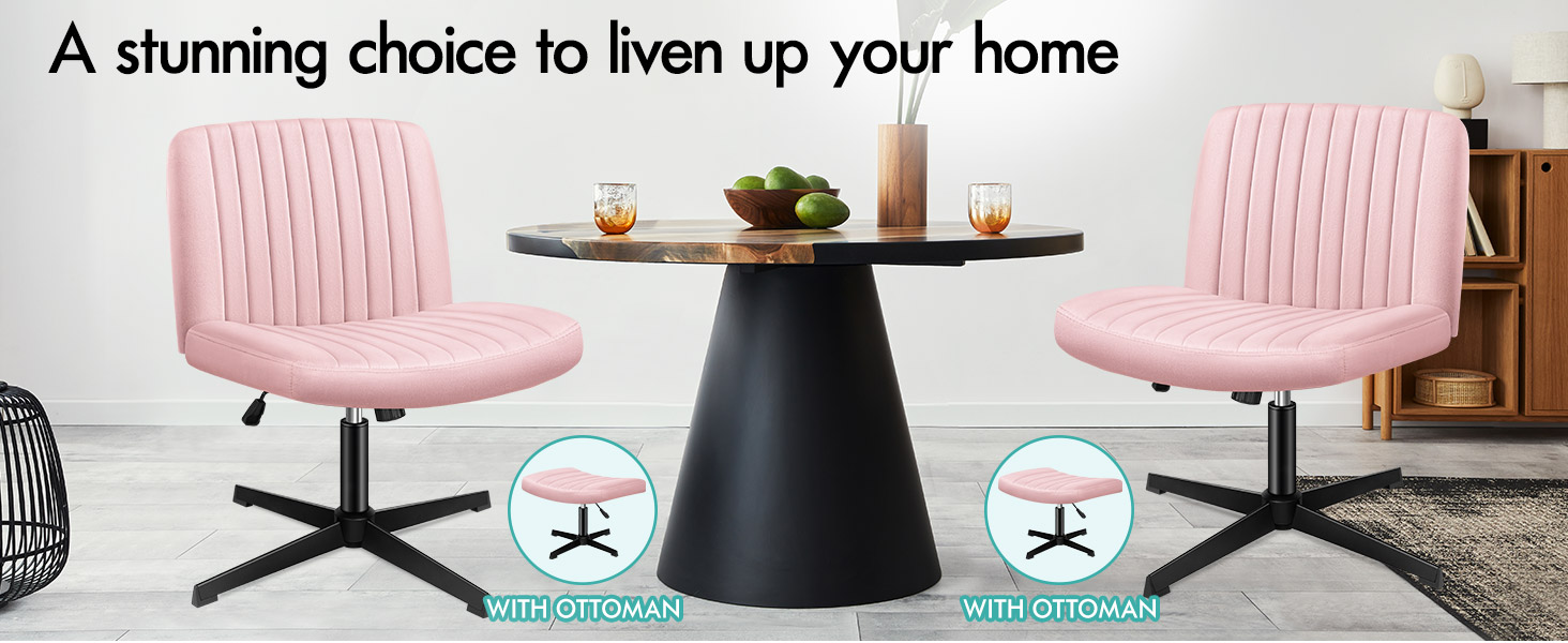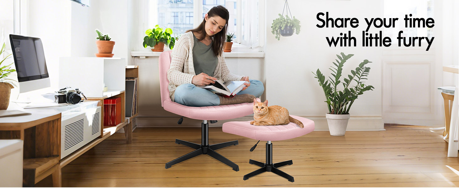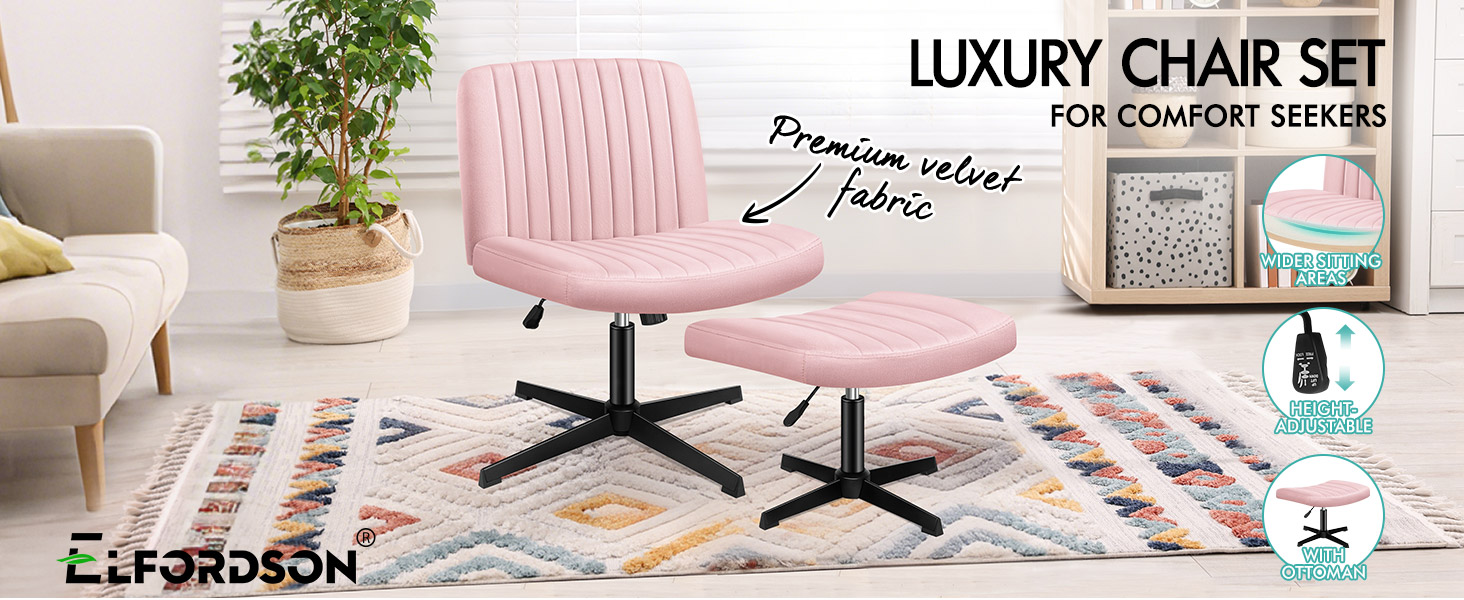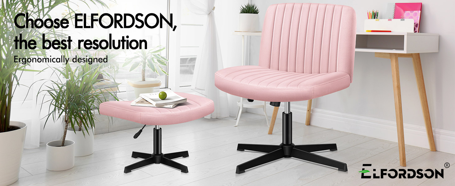 Elfordson Cross Legged Office Chair with Ottoman | Pink