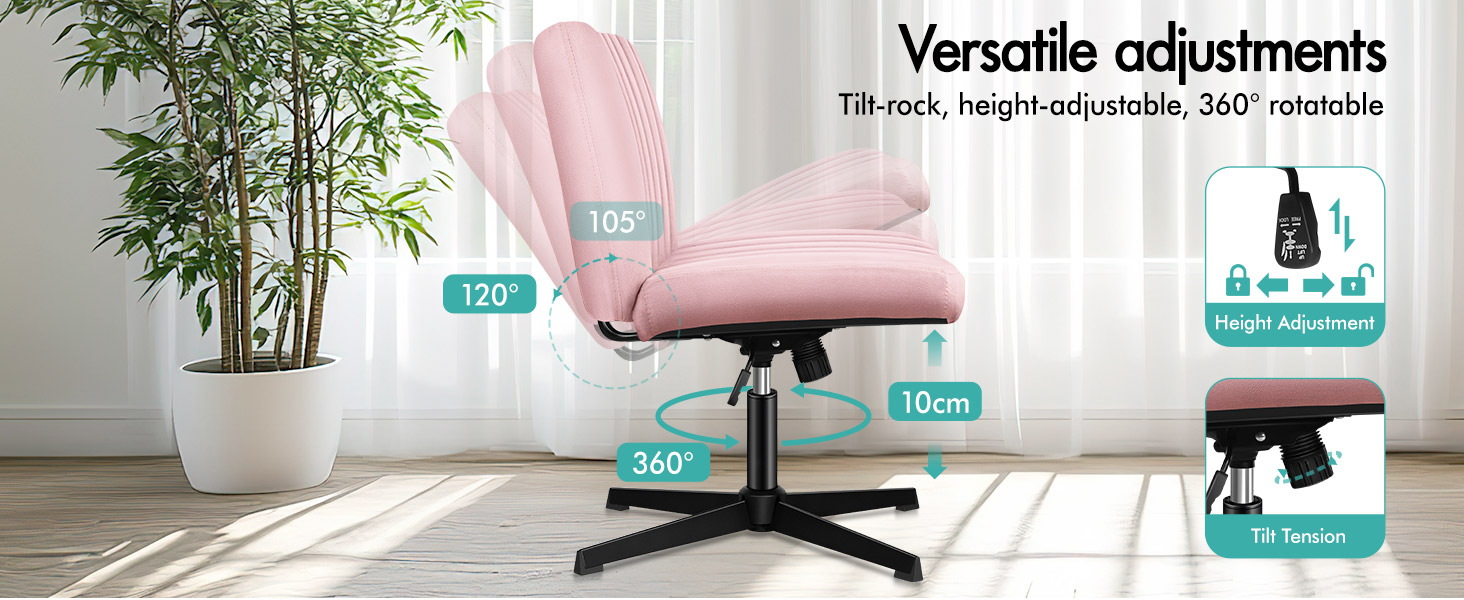 The space-saving armless chair that fits under your desk. 105° to 120° tilt-rock function, 10cm in seat height adjustments (both chair and ottoman), and 360° rotatable gas lift, making this work chair adapts seamlessly to any home office setting.
