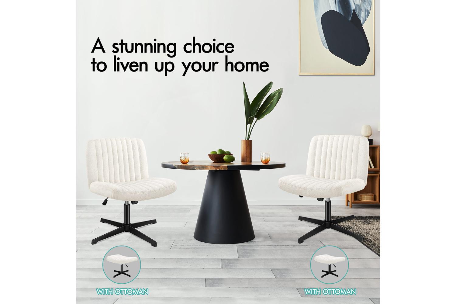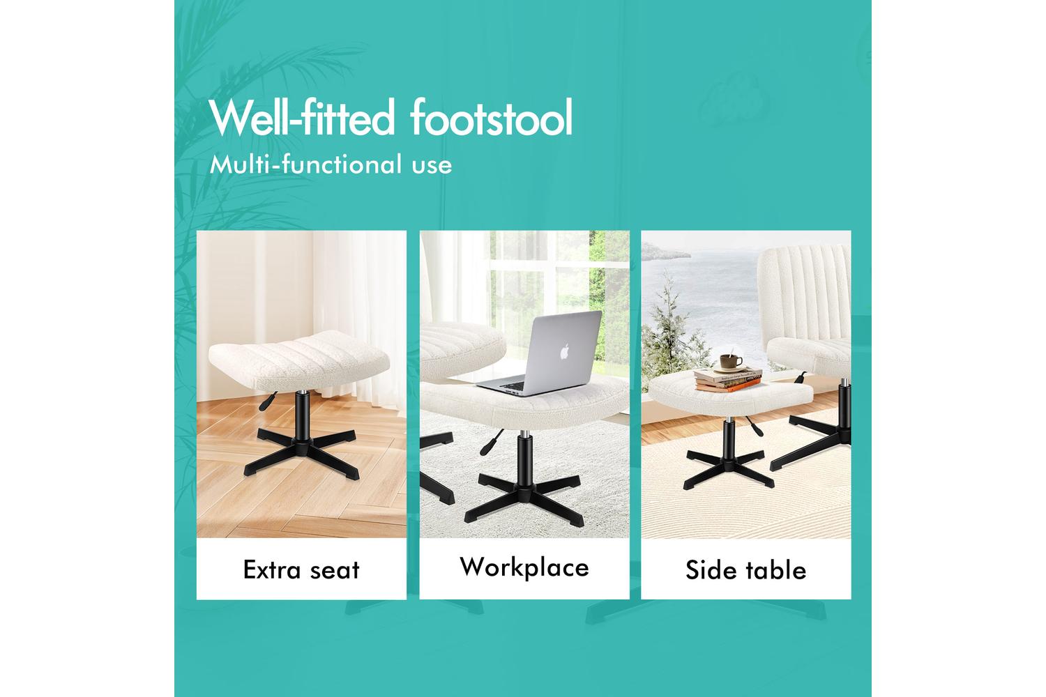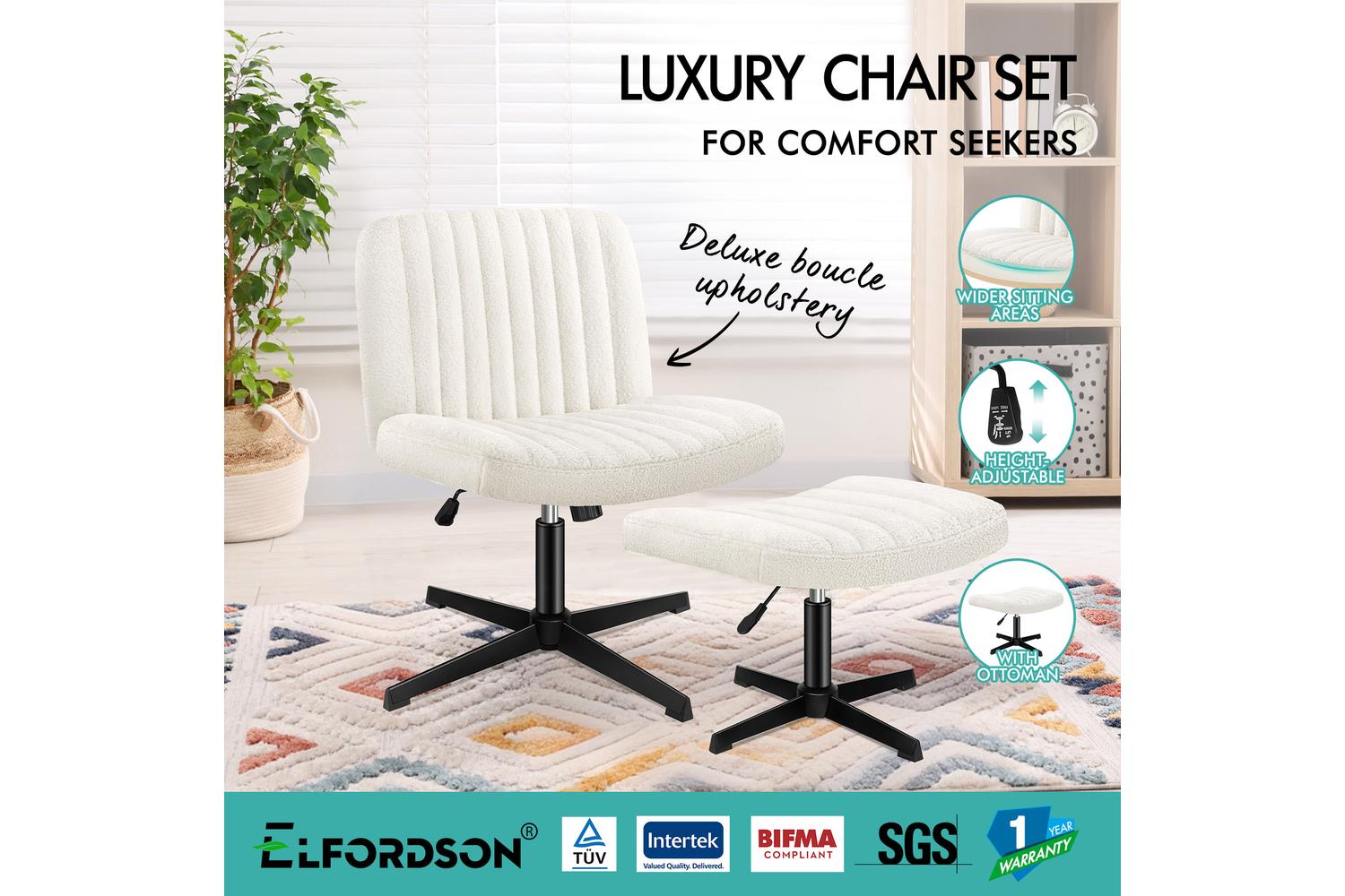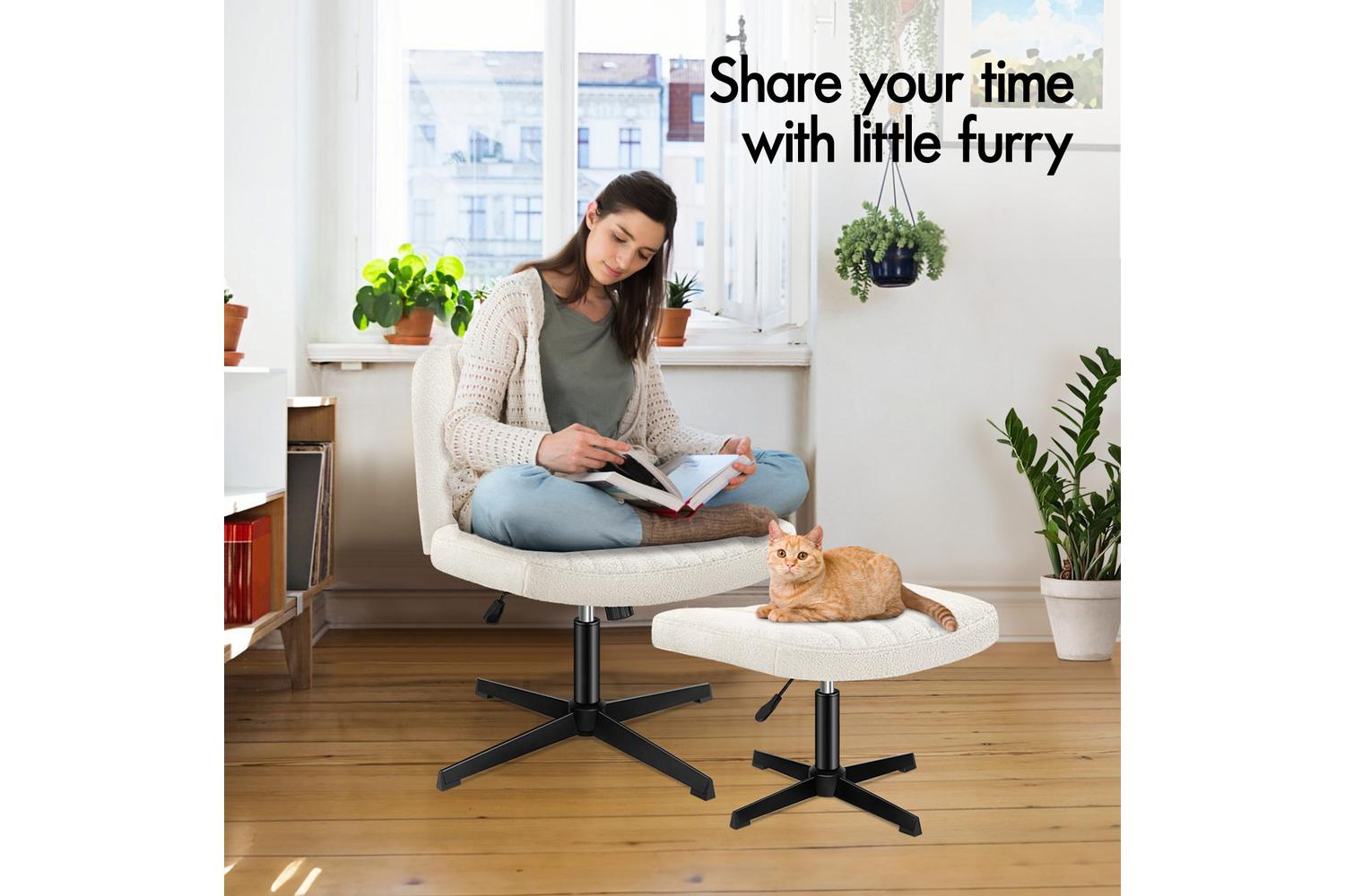 Elfordson Cross Legged Office Chair with Ottoman | White