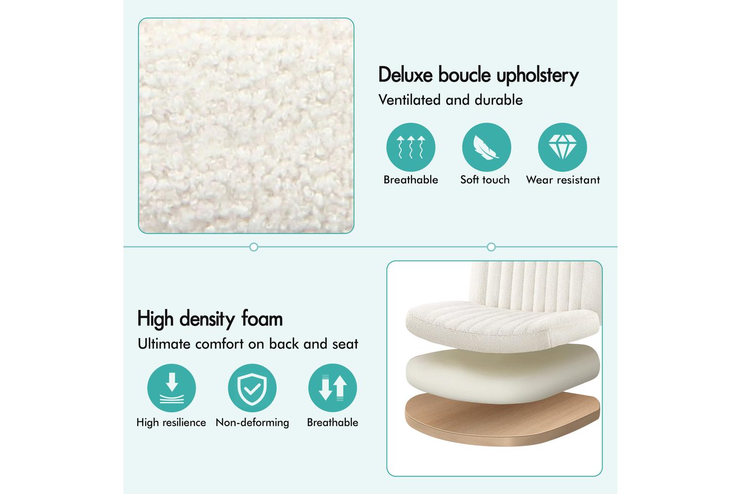 The space-saving armless chair that fits under your desk. 105° to 120° tilt-rock function, 10cm in seat height adjustments (both chair and ottoman), and 360° rotatable gas lift, making this work chair adapts seamlessly to any home office setting.