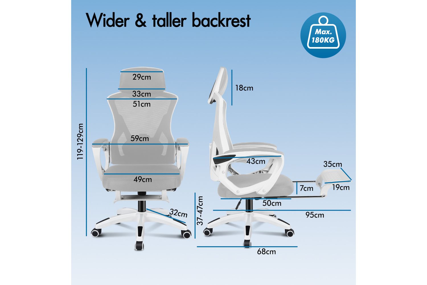 • Wider & taller backrest, we don't cut it short to save cost