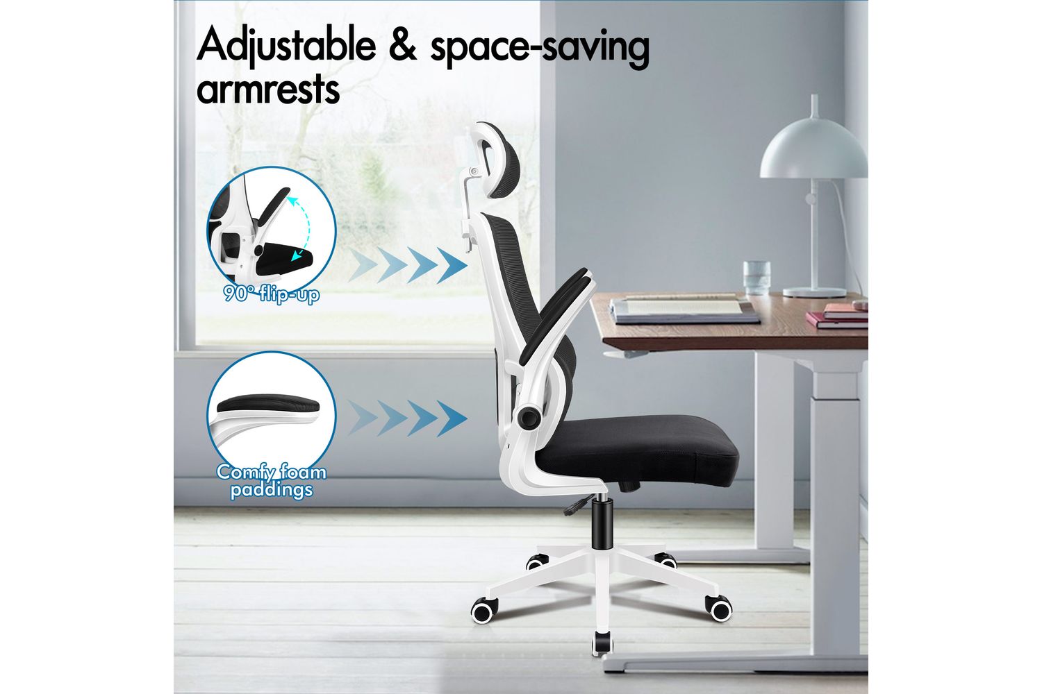 - Retractable armrests to fit under your desk